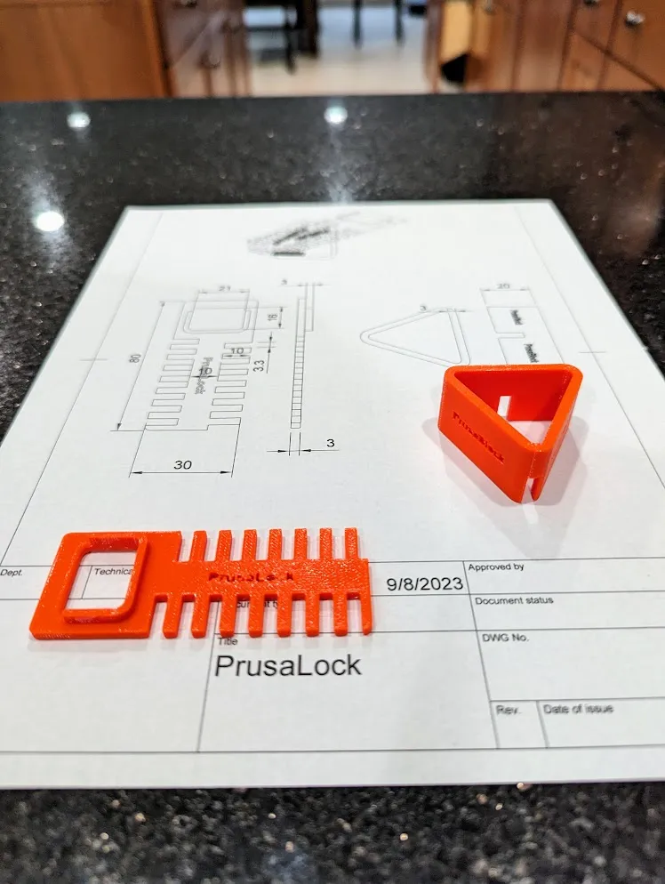 - Lắp Đặt Nhanh Chóng: Không cần dụng cụ! Chỉ cần chèn PrusaLock vào tấm chốt và đóng cửa để khóa.