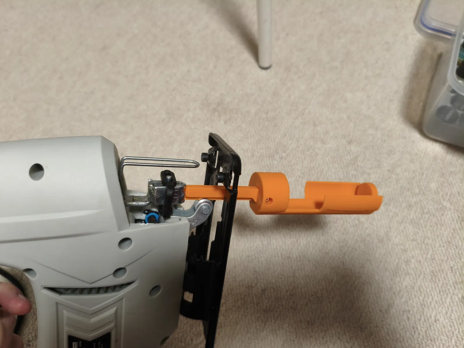 Thiết kế này gắn trực tiếp vào phần kẹp lưỡi của máy cưa lọng (jigsaw) dùng chuẩn T-shank. Mình chỉ mới thử với cái jigsaw giá rẻ của mình thôi nên không chắc nó sẽ hoạt động ra sao với các mẫu máy khác. Mình đã dùng khá nhiều và chưa thấy bị mòn đáng kể ở phần ngàm gắn vào jigsaw, nhưng vẫn có khả năng nó sẽ mòn dần theo thời gian. Mình khuyên nên in bằng vật liệu khác ngoài PLA vì khi chạy có thể sinh nhiệt do ma sát.
