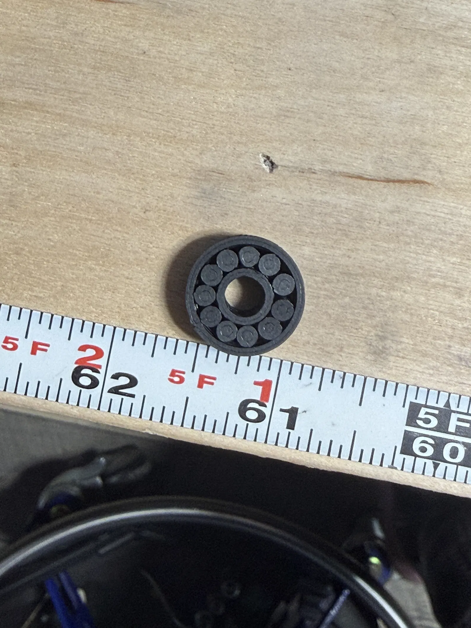 Mình cần một cái bearing mà không muốn phải ngồi chờ anh ship Prime quen thuộc tới giao tận tay. Với lại cũng tò mò thiệt, không biết mình có làm ra cái chạy được và không bung ra ngay khi vừa lấy khỏi máy in hay không. Mình có quay video ném nó lên mặt bàn, mấy cái pin không rớt ra, nhưng bạn cứ in thử rồi xem bạn thấy sao.