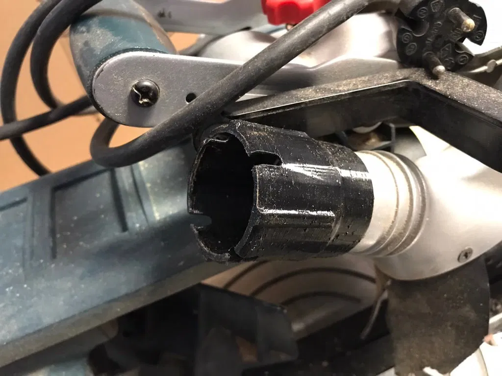 - Cần một con ốc (M4) để cố định phần đầu vào thân máy cưa; lý do là vì khi lắp lên thì không để vừa trong hộp. D48 ở phía đầu máy hút bụi, D40 ở phía đầu máy cưa; vì vậy cũng có thể gắn cho ống nào có đường kính 40mm.
