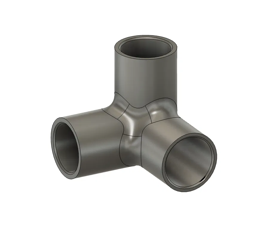 Mẫu elbow connector theo yêu cầu từ Reddit, thiết kế thành dày 3 mm. Thông số: hai đầu 1.25 inch và một đầu 1.3125 inch, phù hợp nhu cầu nối ống/khung theo chuẩn imperial.