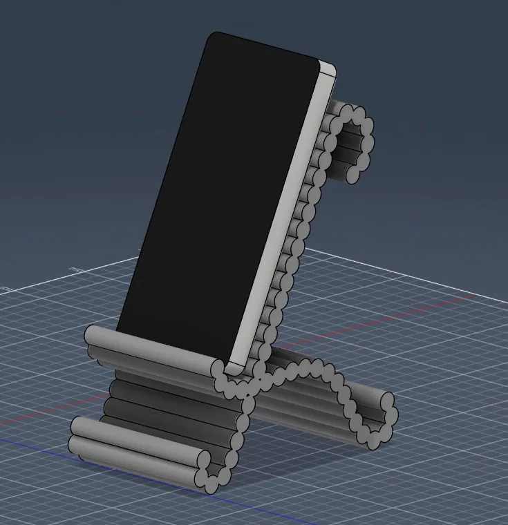 Kệ đỡ điện thoại/tablet nhỏ phong cách hiện đại với bề mặt vân gân nổi bật. Giữ máy chắc ở cả portrait lẫn landscape, góc nhìn đẹp. In dễ, không cần supports khi in nằm nghiêng; hợp PLA/PETG.