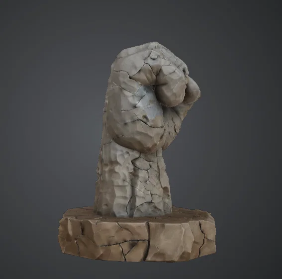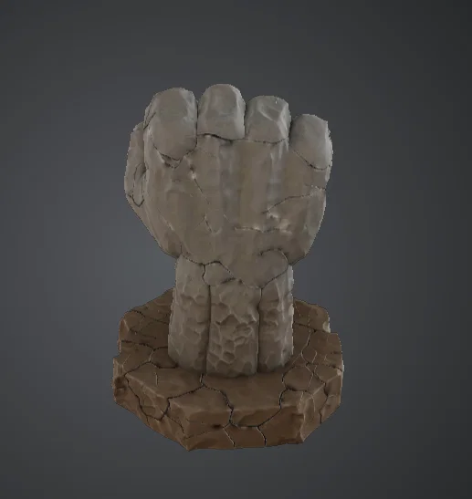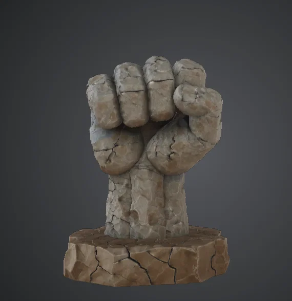 Được tạc từ khối đá đặc và trồi lên từ mặt đất nứt vỡ, Stone Fist Monument ghi lại sức mạnh thô bạo của một titan gục ngã hoặc một colossus đang thức tỉnh. Bàn tay siết chặt vươn lên từ bệ đá nứt toác, bề mặt phủ lớp vân phong hoá và những khe nứt sâu, như kể lại câu chuyện về sức mạnh cổ xưa và những trận chiến đã bị lãng quên.
