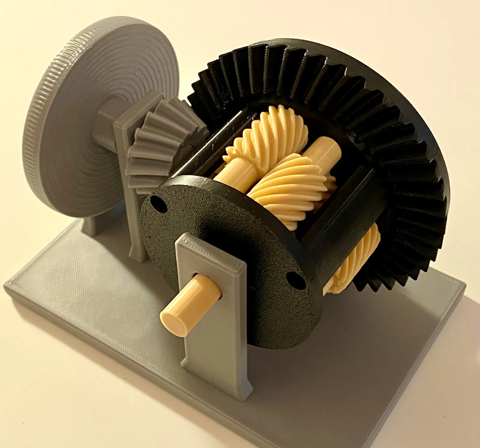 Mẫu Torsen differential Type 2 dễ in, có thêm đế và bánh răng dẫn động để lắp đặt chắc chắn. Chỉ cần 3 bu lông M3x25 kèm ê-cu. In không cần support, PLA phổ thông, layer height 0.2mm.