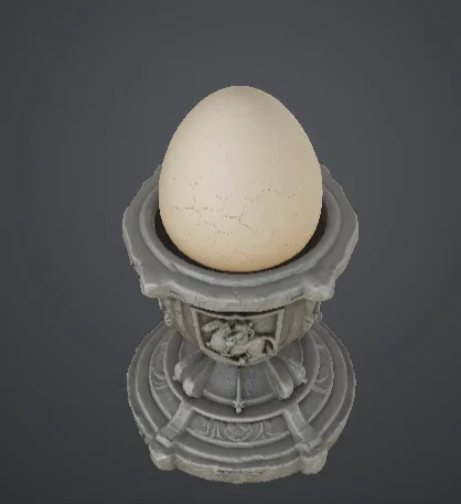 Trưng bày một thánh vật huyền thoại với Bệ Trưng Bày Trứng Rồng này — một bệ thờ trang trí công phu được thiết kế để tôn lên vẻ uy nghi của một quả trứng thần thoại hoặc cổ vật linh thiêng. Với các tấm khiên huy hiệu được chạm khắc, hoa văn trang trí tinh xảo và nhiều lớp chi tiết giả đá, chiếc bệ gợi lên sự tráng lệ của kho báu đền cổ hay thánh địa rồng hoàng gia.