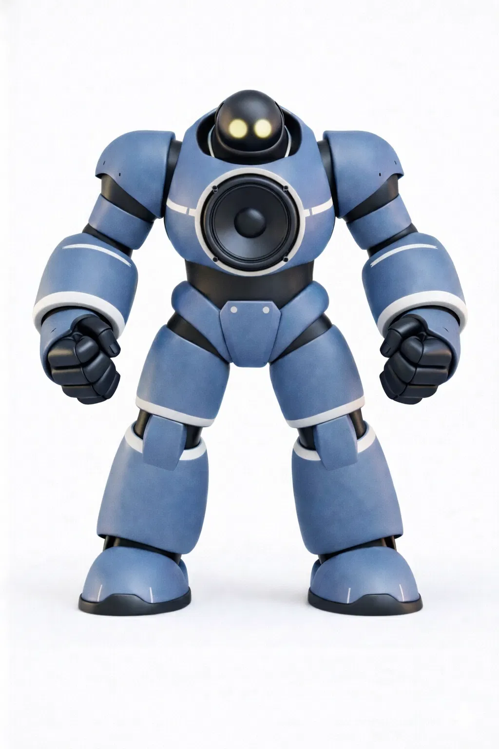 Nhân vật này đã nằm trong đầu mình từ hồi cấp 3—một tay đấm robot chuyên dùng âm thanh, với cái subwoofer khổng lồ được tích hợp thẳng vào lồng ngực. Sau nhiều năm chỉ để dưới dạng phác thảo, cuối cùng mình cũng ngồi xuống học Blender và đưa ảnh ra đời thật.