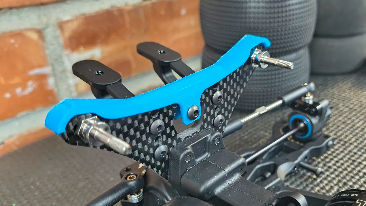 In bằng ABS thì cái cover này thấy đủ cứng, mà vẫn đủ “mềm” để dùng được với shock tower 4-dot nữa (hình minh hoạ màu xanh). Nhưng khi in bằng PPA-CF thì cảm giác gần như không thể phá hư. Mình thà in 20 cái rồi thay vài lần trong cuối tuần chạy giải, còn hơn dùng một bản TPU nhìn xấu.