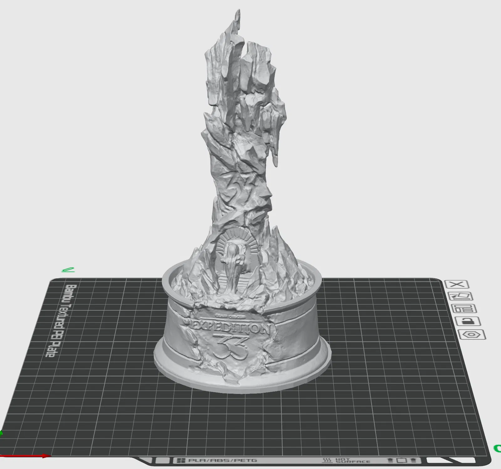 Clair Obscure Expedition 33 Monolith. Thiết lập khuyến nghị: nozzle 0.2mm, chất lượng cao, dùng tree supports để ra kết quả đẹp nhất.