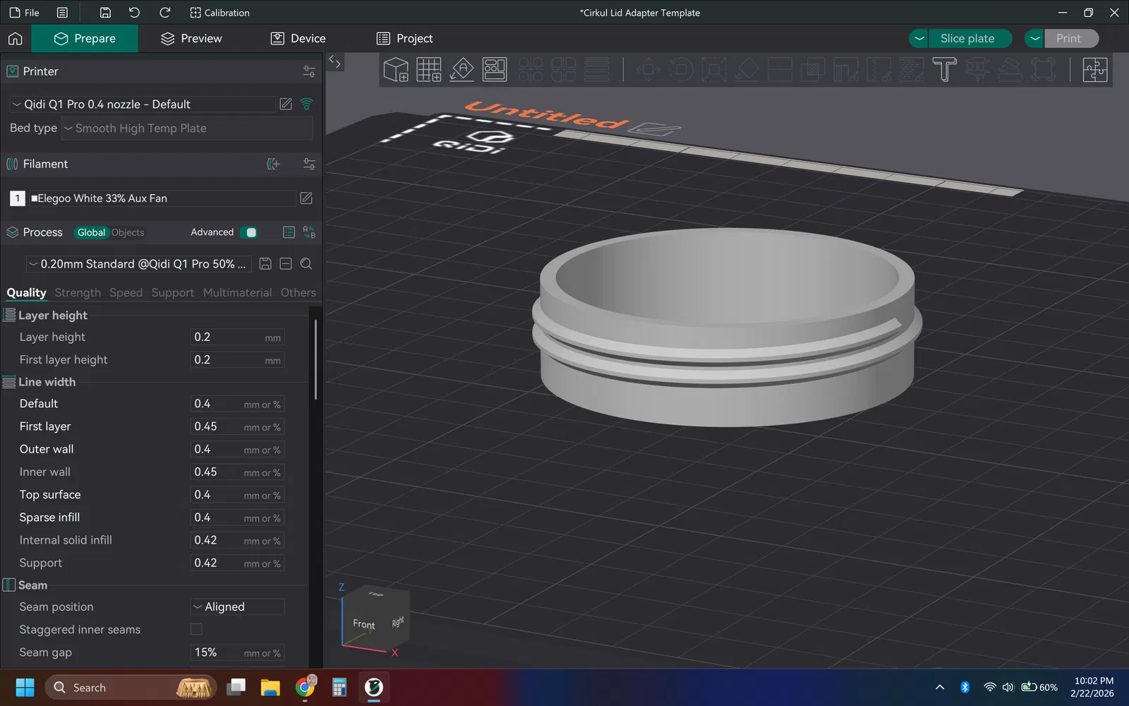 Jig/template làm sẵn cho nắp Cirkul, dùng để canh ren khi chế adapter Cirkul theo ý bạn. Phù hợp làm khuôn tham chiếu để thiết kế và in 3D các chi tiết tùy biến.