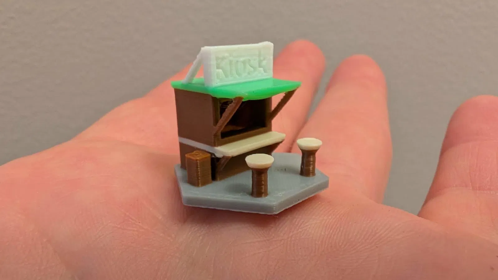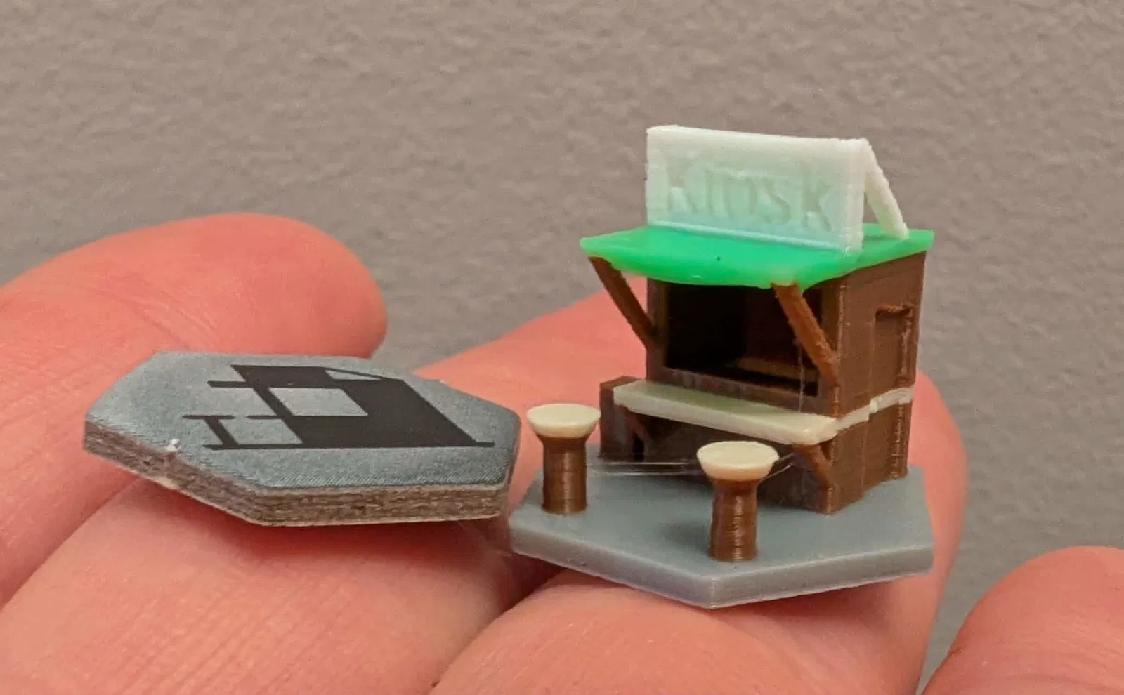 Mẫu 3D token kiosk cho Ark Nova, thiết kế tối giản để giống hình token gốc hơn (không bị giống cửa hàng/trạm xăng). Có thêm cửa và thùng rác. Gợi ý in 0.1mm, max bridge flow/density trong Orca beta.