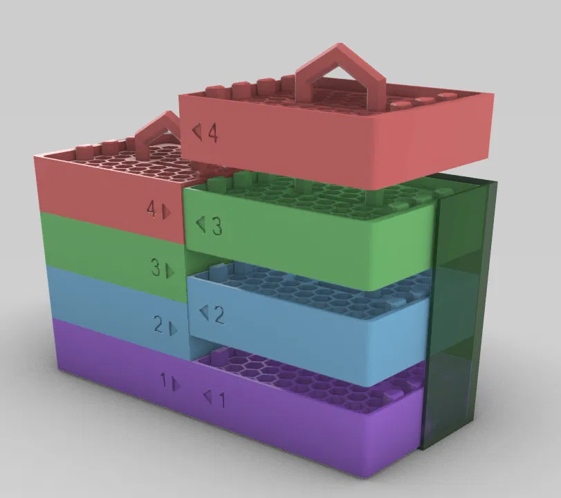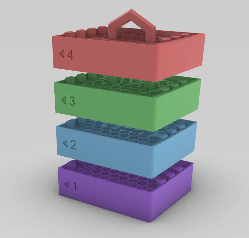 • Công thái học tối ưu: Mỗi khay có tay cầm dạng nửa lục giác (half-hex) để rút ra dễ dàng, kể cả khi mang găng.