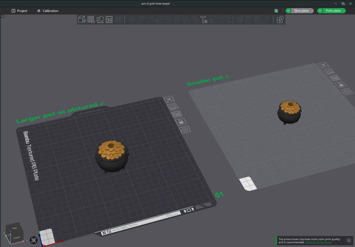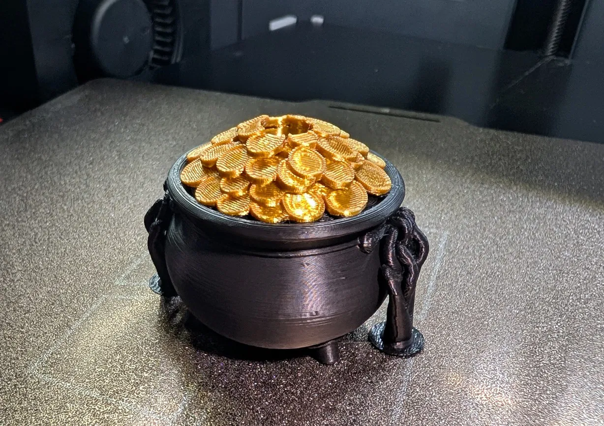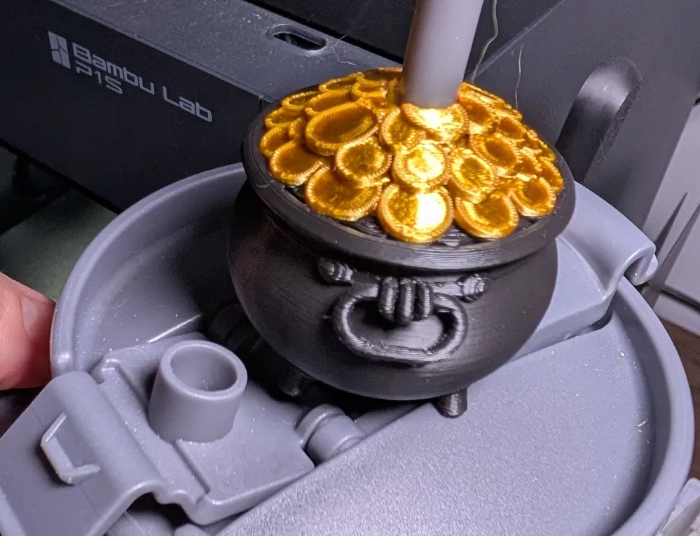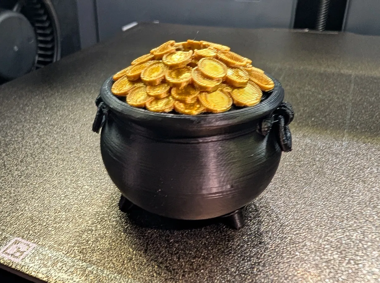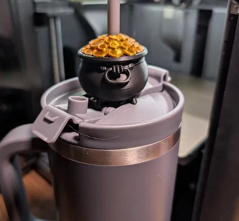 Một cái nồi vàng cỡ lớn để gắn lên ly yêu thích của bạn. Thiết kế để vừa ống hút size 10mm, nhưng ống nhỏ hơn thì dĩ nhiên vẫn dùng được. Mình cũng làm thêm một phiên bản nồi nhỏ hơn, vì bản in có thể to hơn mức bạn mong muốn. Nhớ cẩn thận phần support ở hai cái quai. Mình đã bấm/cắt nó đúng vị trí như trong ảnh chụp màn hình mình up lên. Chúc bạn in vui!