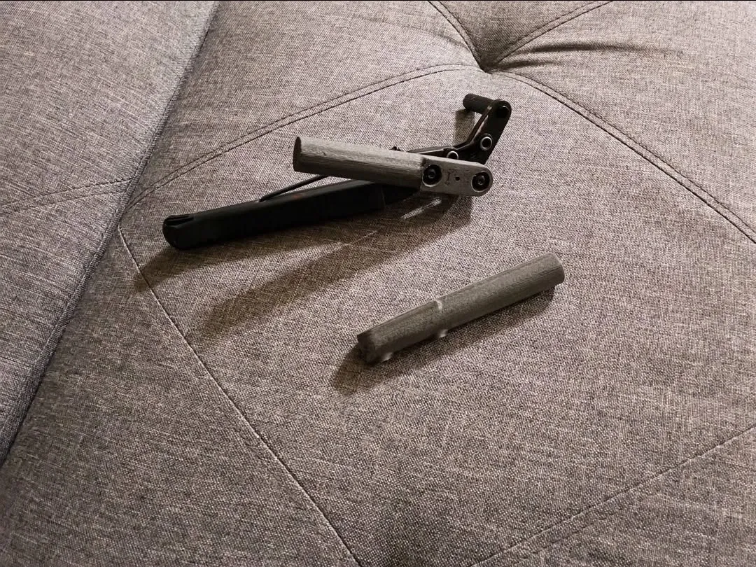 Chi tiết thay thế cho cụm phanh tay xe lăn kiểu Newton: ngàm gắn chịu lực có mount dạng trụ và 2 lỗ xuyên để nối tay phanh/linkage vào khung. Nên in bằng ASA hoặc Nylon; ưu tiên dùng file 3MF có mesh modifier.