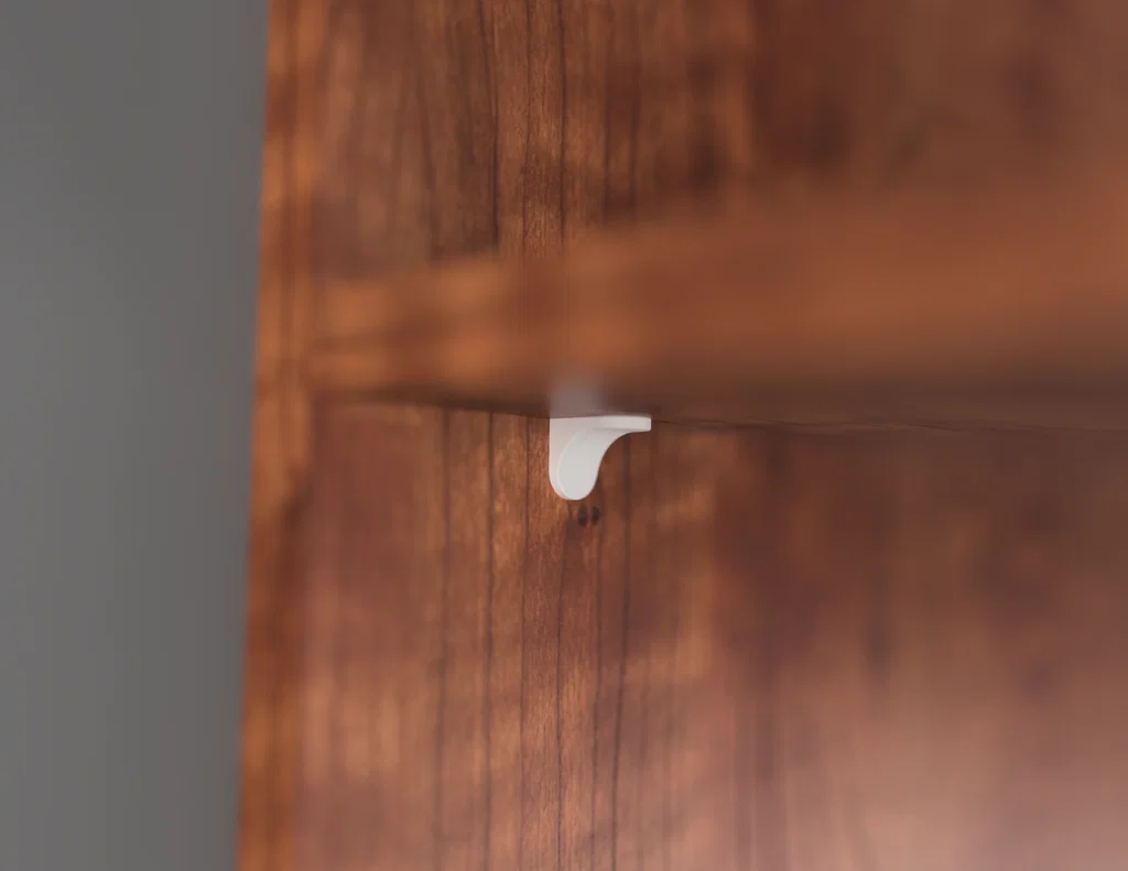 Miếng đỡ kệ nhỏ gọn, dáng cong tối giản, lắp press-fit cho các lỗ kệ tiêu chuẩn 5mm trên tủ, tủ áo và kệ sách. Tối ưu cho in 3D FDM (PLA/PETG), in phẳng, không cần supports, infill 100% cho độ chắc cao.