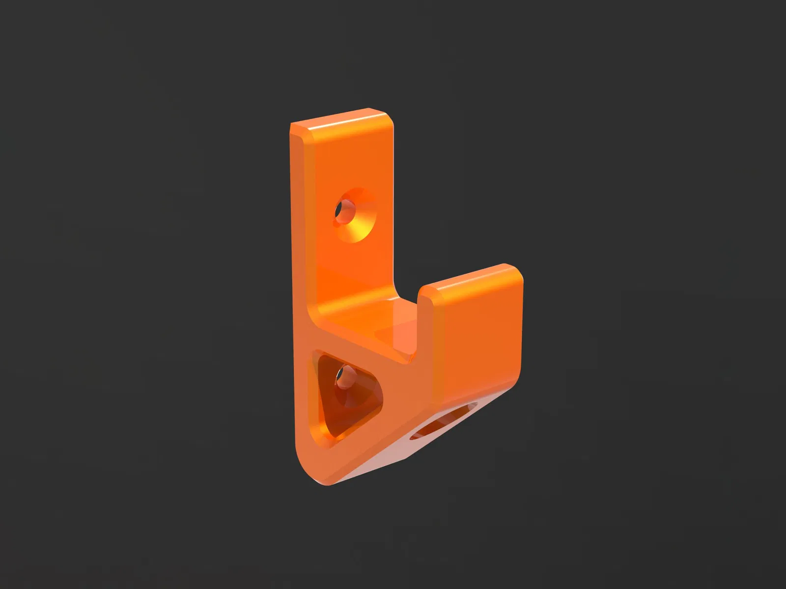 Móc đơn giản nhưng mạnh mẽ và nhanh chóng, dễ dàng in. Không cần hỗ trợ cho bản in này. Móc có thể được lắp đặt bằng hai vít nhỏ.