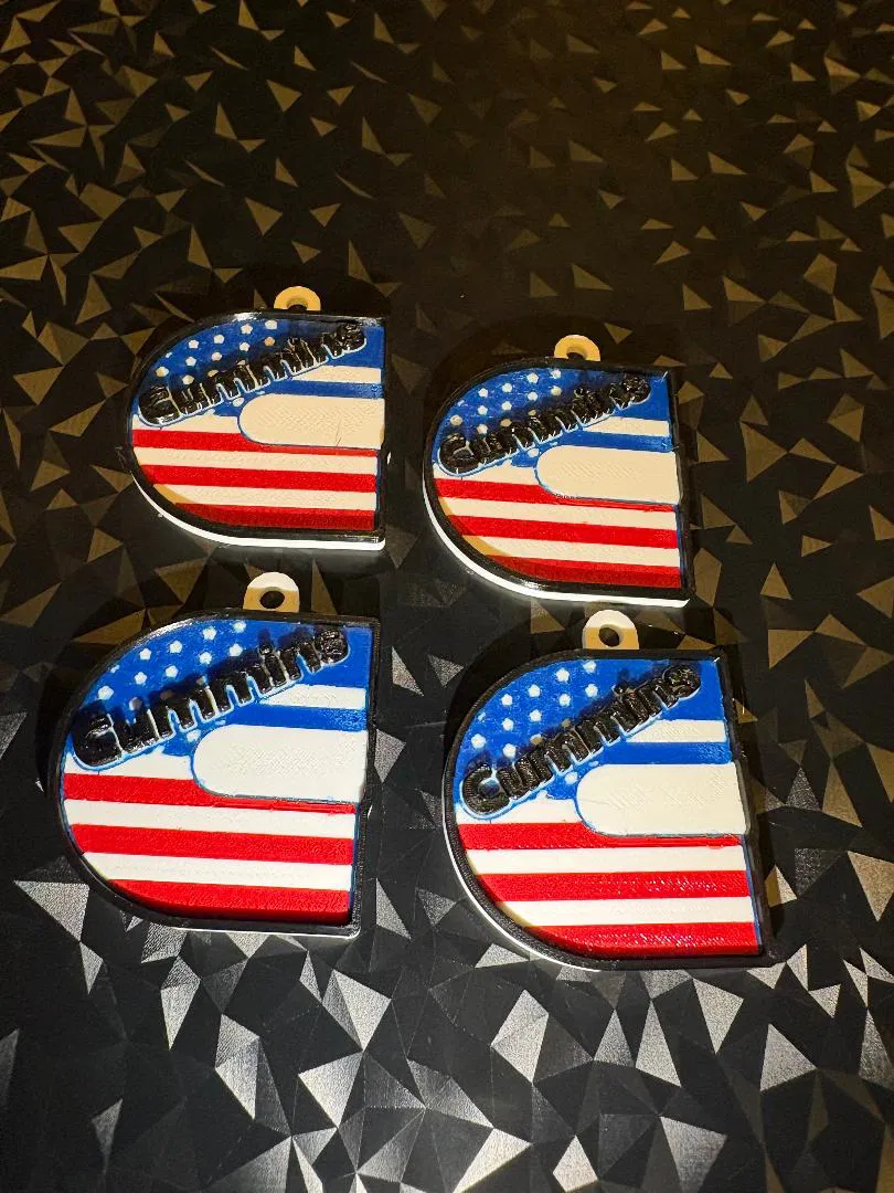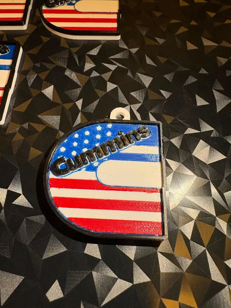 Móc khóa Cummins Diesel tông đỏ–trắng–xanh đậm chất Mỹ, dành cho người mê torque. File in nhanh, chi tiết rõ, hợp gắn chìa khóa hằng ngày hoặc treo ở toolbox.