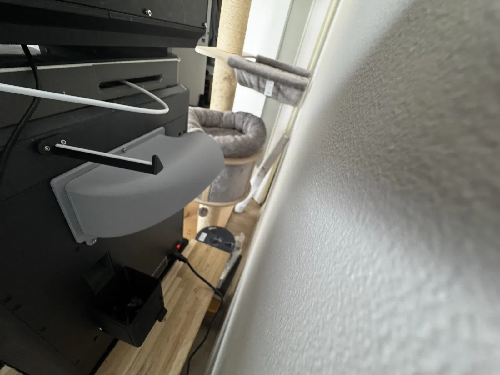 Gắn vào mặt sau máy in bằng 3 vít M3x10 và nối ra ống thông gió 100mm bằng một cái hose clamp đơn giản.