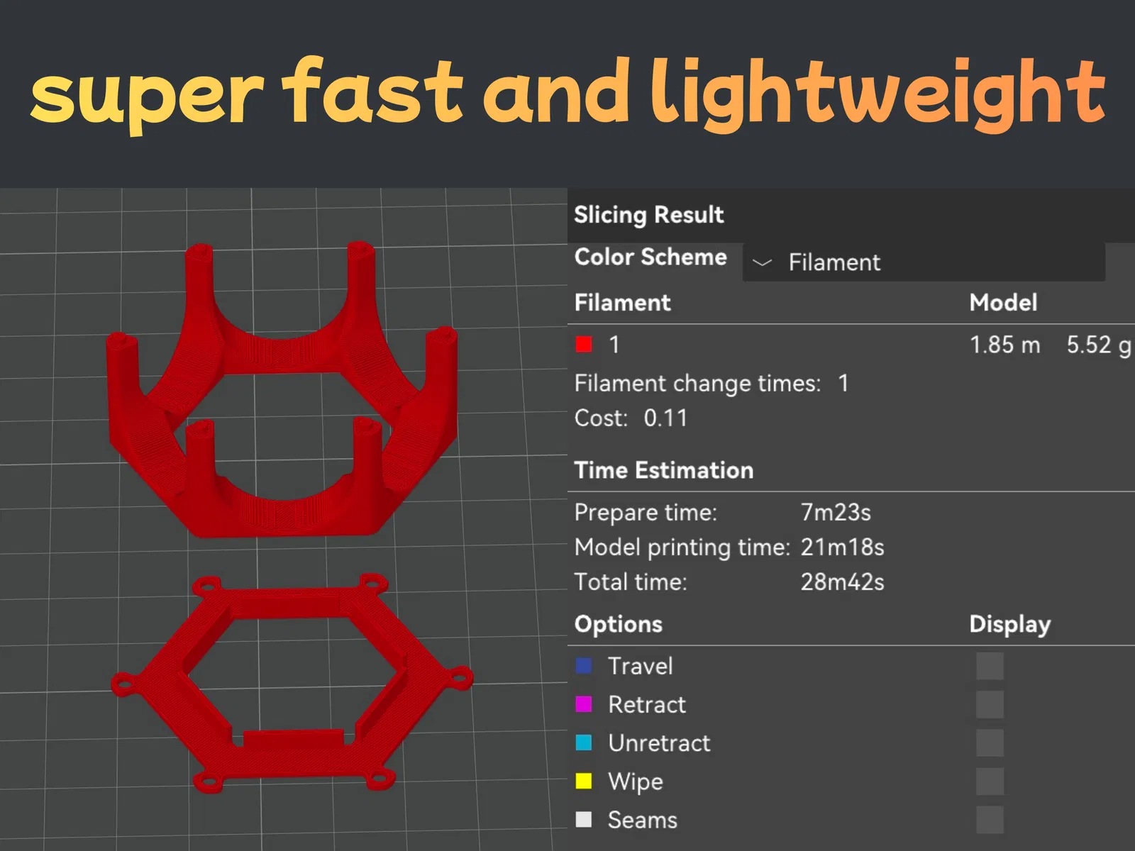 Cái nhỏ nhất chỉ cần khoảng 5 gram filament nên siêu nhẹ. Mình in bằng PLA.
