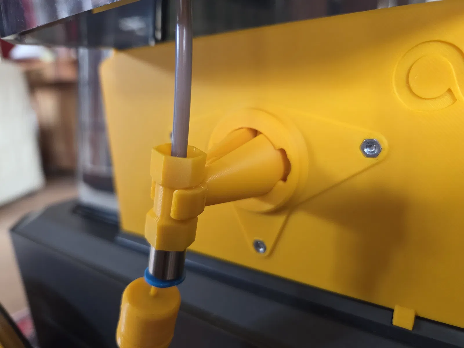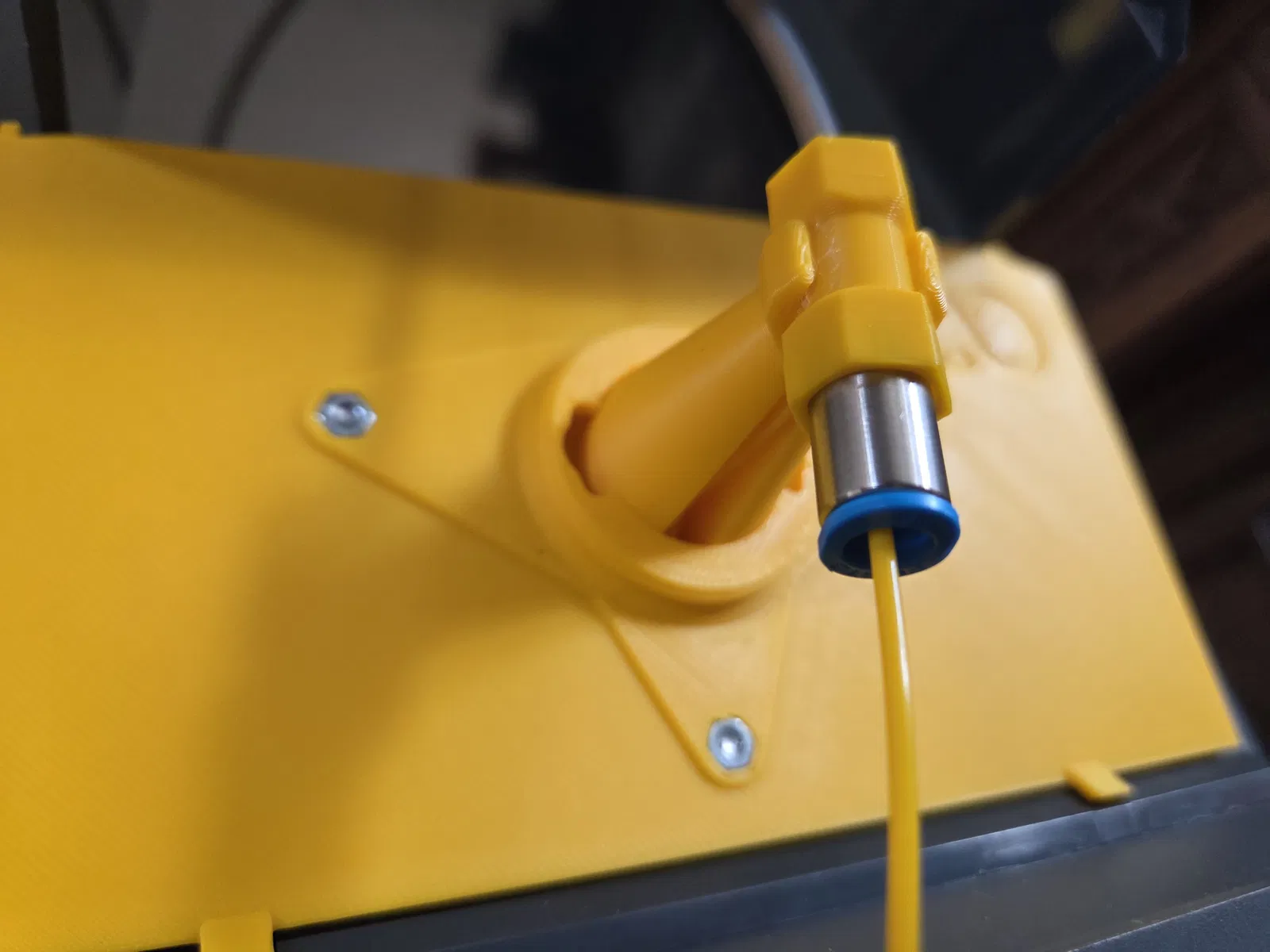 ngàm universal sẽ lắp lên canvas mount. phần tay (arm) có thể trượt vào ngàm universal và xoay để dùng được mọi spoolholder (1 - 4) hoặc spoolholder ngoài (mình dùng drying station). thiết kế có cơ chế bấm “click” để giữ ở một vài vị trí theo góc xoay. thiết kế không hoàn hảo nhưng chạy rất ổn và dễ chỉnh sửa. phần connector là chi tiết duy nhất cần in nghiêng 90° và có support bên trong. có thể vặn một đầu nối khí nén Festo vào vị trí, nhưng không gắn cũng vẫn dùng được.