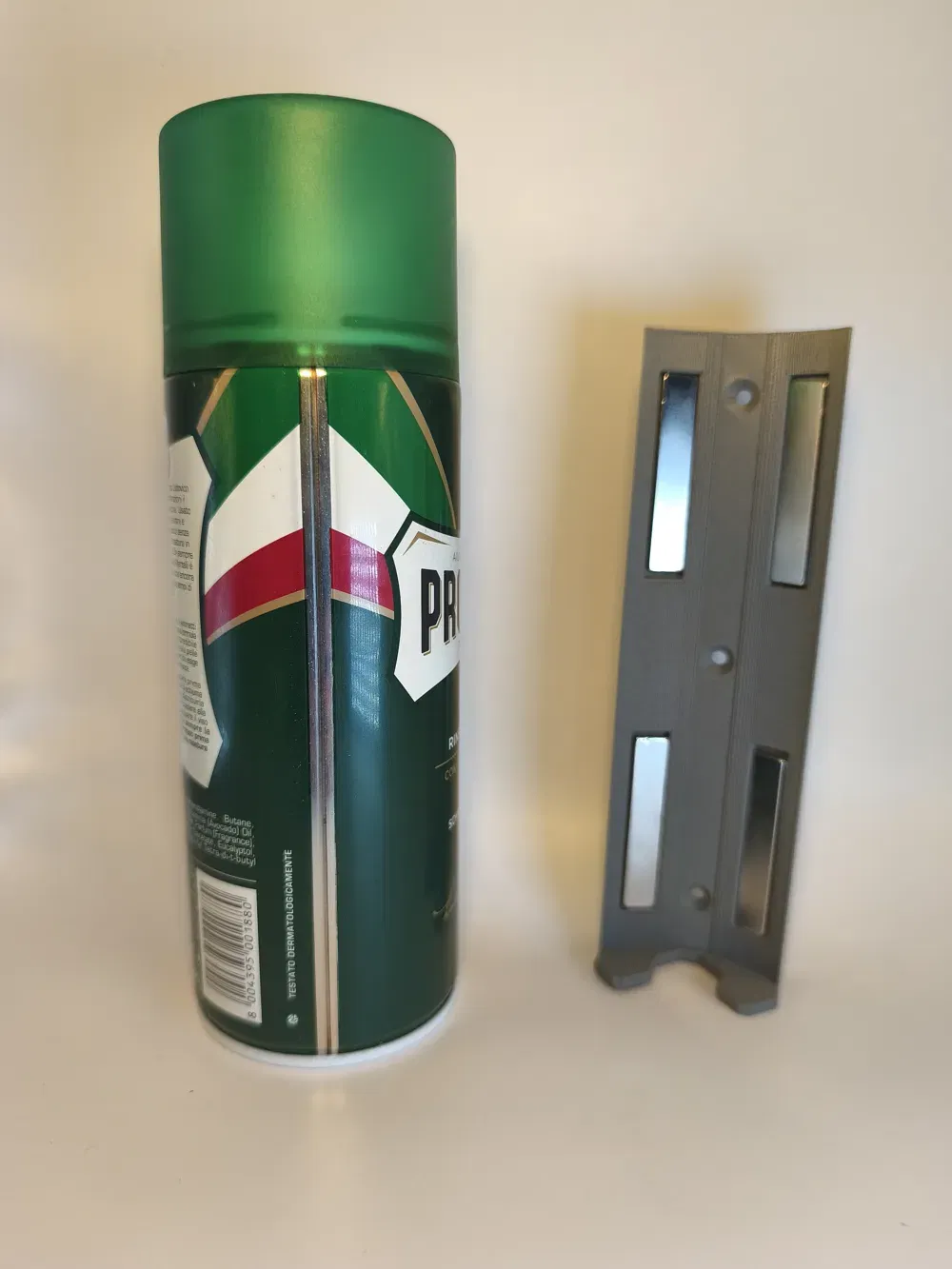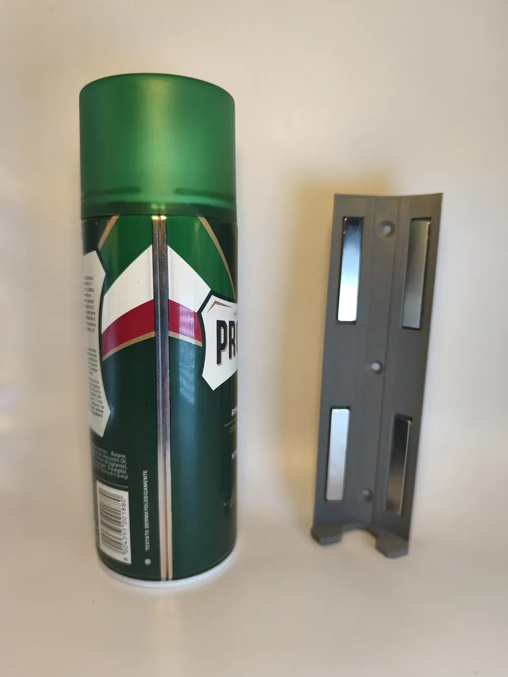 Giá treo lon từ tính (400ml) dành cho workshop, giúp sắp xếp gọn gàng spray can/dụng cụ. Thiết kế dùng 4 nam châm khối 50x10x2 mm và tùy chọn bắt tường cố định bằng 3 vít đầu chìm 3.5mm.