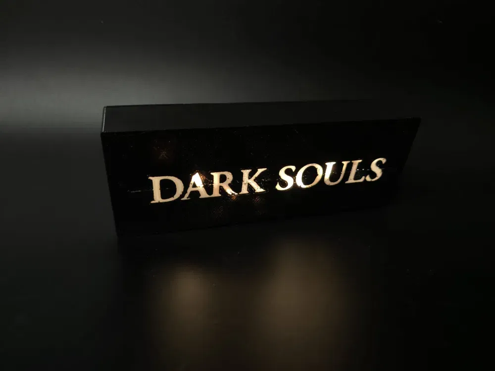 Lightbox Dark Souls phong cách, dành cho fan của series. Đèn cho ánh sáng ấm, tạo không khí thư giãn ban đêm. Khuyến nghị in PETG/PLA, nozzle 0.4 mm, layer 0.2 mm, infill 15–20%.