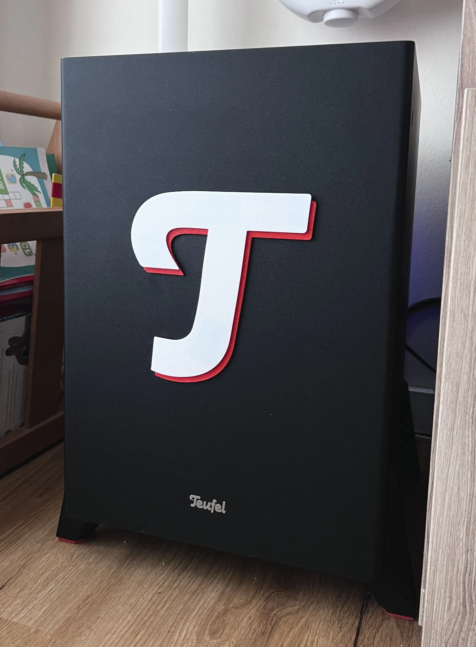 Trang trí subwoofer của bạn với logo chữ T cỡ lớn thật đẹp của Teufel.