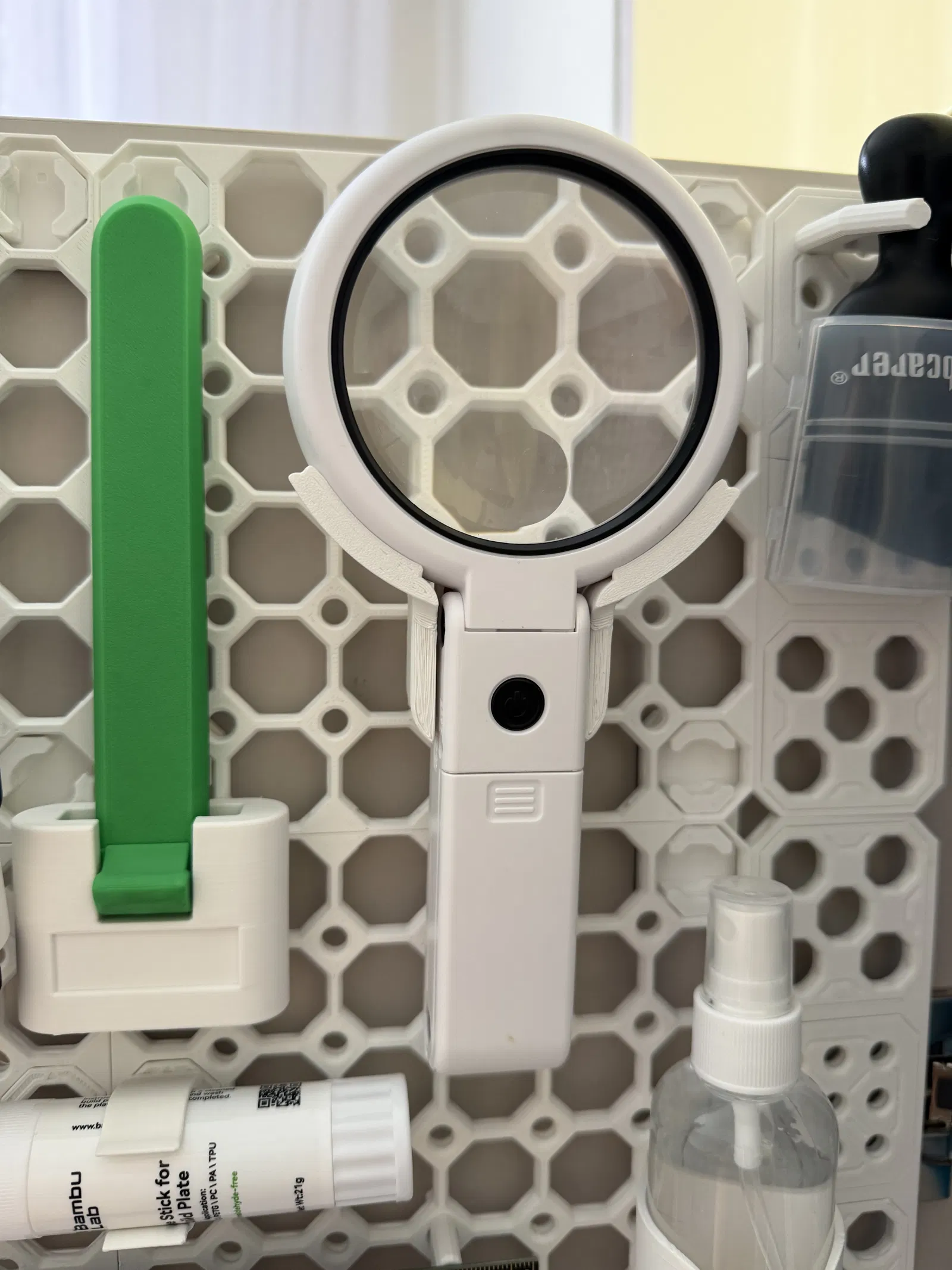 Mẫu giá đỡ kính lúp dành cho hệ Multiboard, thiết kế để lắp vừa khít với mẫu kính lúp trong link AliExpress đính kèm. Phù hợp khi cần cố định kính lúp gọn gàng trên bảng.