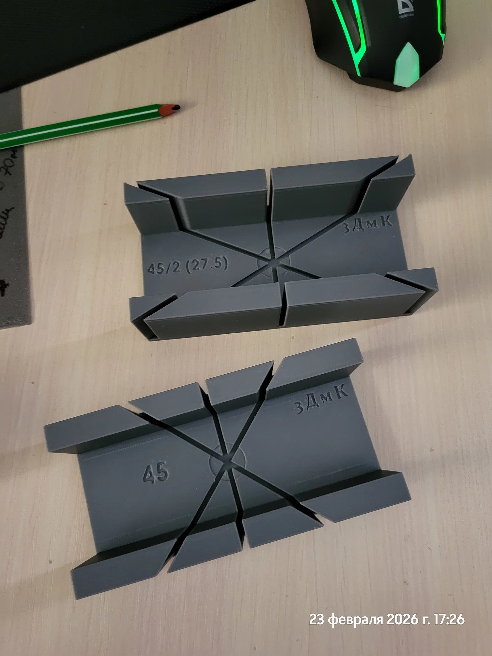 Mẫu Стусло gồm 2 phiên bản để canh cắt theo góc 45° và 27,5°. Phù hợp làm jig hỗ trợ cắt/định hướng vật liệu khi gia công, giúp đường cắt đều và chính xác hơn.