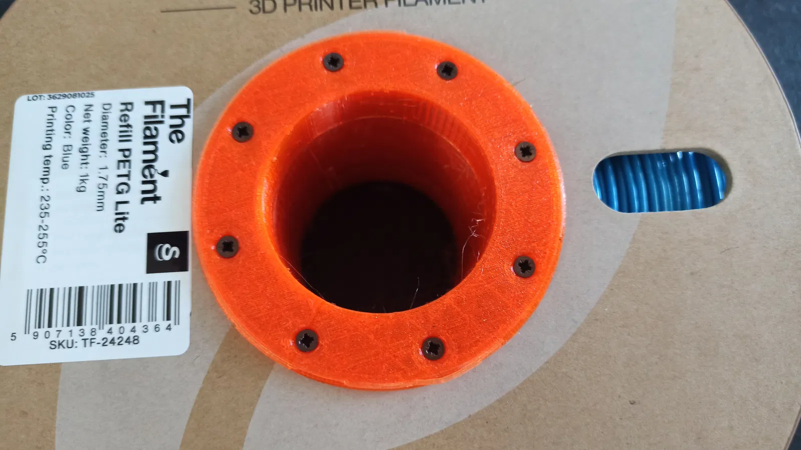 Mẫu in dễ, giúp tận dụng cuộn spool bìa carton eSUN đã hết để làm refill spool. In nhanh hơn so với spool in full 3D, không cần bàn in lớn và tiết kiệm nhựa. Chỉ cần 16 vít gỗ 2.5mm dài 12–15mm.