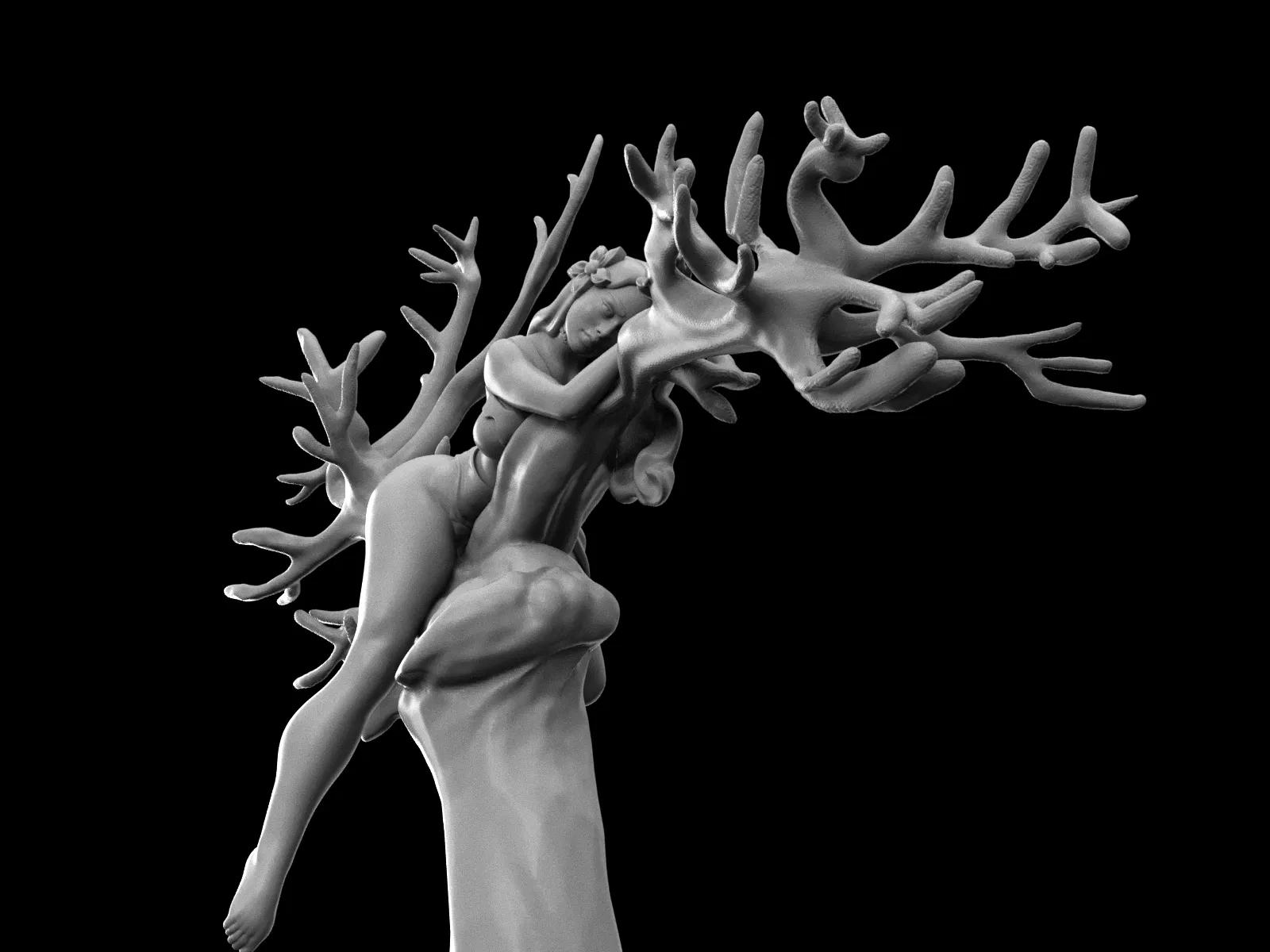 “Cuộc sống lúc nào cũng tìm được cách để nở hoa.” Tượng điêu khắc 3D in được này là một hình ảnh đầy chất thơ về mùa Xuân. Mẫu khắc họa một dáng nữ mảnh mai đang tựa nghỉ trên một thân cây cổ thụ khô cằn. Cô không chỉ là một cô gái; cô là linh hồn của một đóa hoa, tượng trưng cho sự hồi sinh của thiên nhiên và vẻ đẹp bừng lên sau một mùa đông dài lạnh giá.
