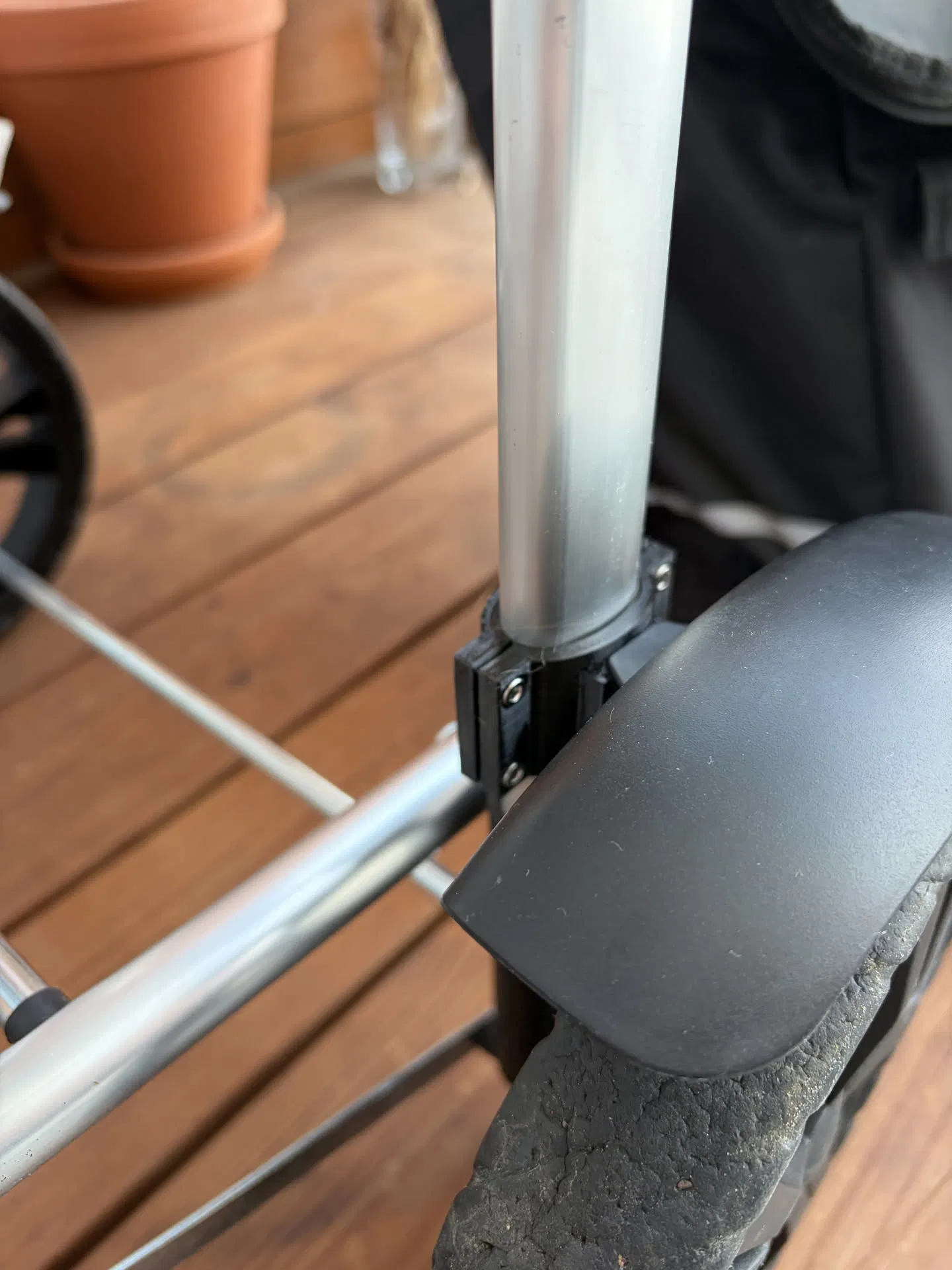 Ngàm thay thế để gắn chắn bùn cho xe đẩy mua sắm Silvercrest (IAN 100391547) khi ngàm zin bị hư. Cần 8 bulông M3x10 và 8 đai ốc M3; khuyên in PETG. Có kèm file STEP để tuỳ chỉnh.