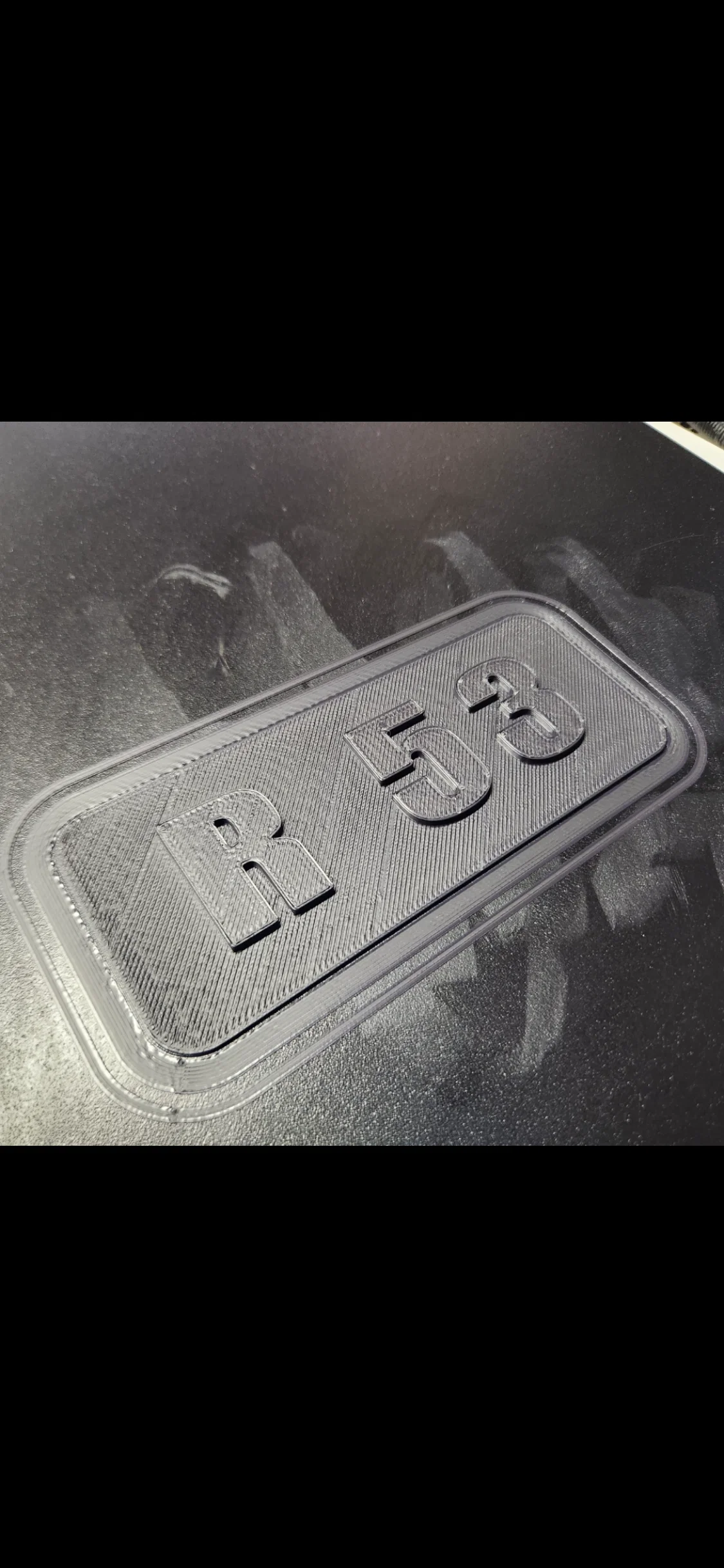 Bảng tên (name plate) dành cho nắp che động cơ R53. Khuyến nghị in với ASA, PETG CF, ABS hoặc Nylon, infill 20%. Có thể tận dụng tính năng đổi màu của máy in để làm chữ/chi tiết nổi bật.