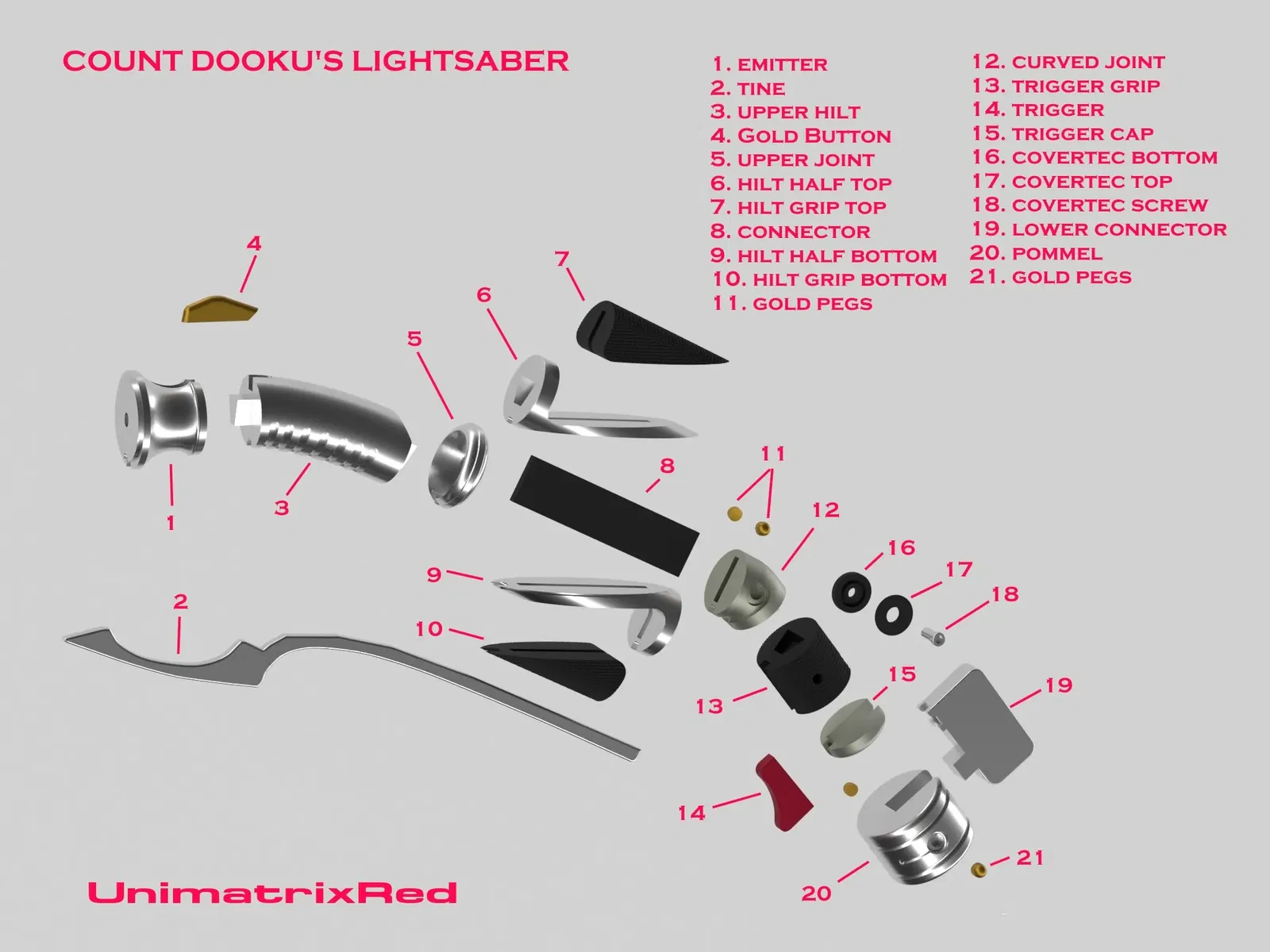 Xây dựng chiếc lightaber cong được sử dụng bởi Sith Lord Darth Tyranus từ Star Wars Episodes II & III.