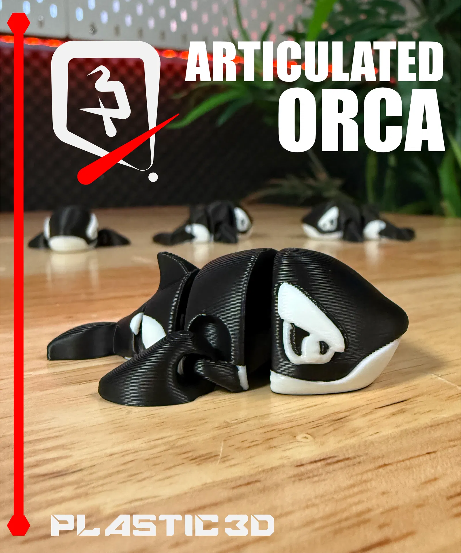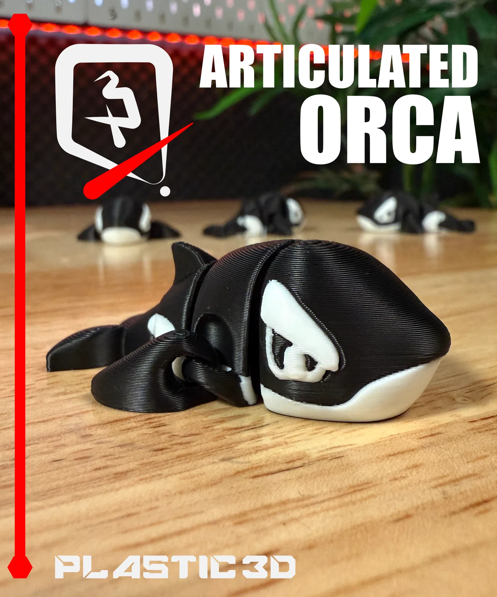 Mẫu Articulated Orca phong cách chibi với thân phân đoạn bơi lắc mượt, print-in-place không cần support. Tối ưu in multi-color cho họa tiết đen-trắng đặc trưng, trưng bày đẹp và cầm chơi đã tay.