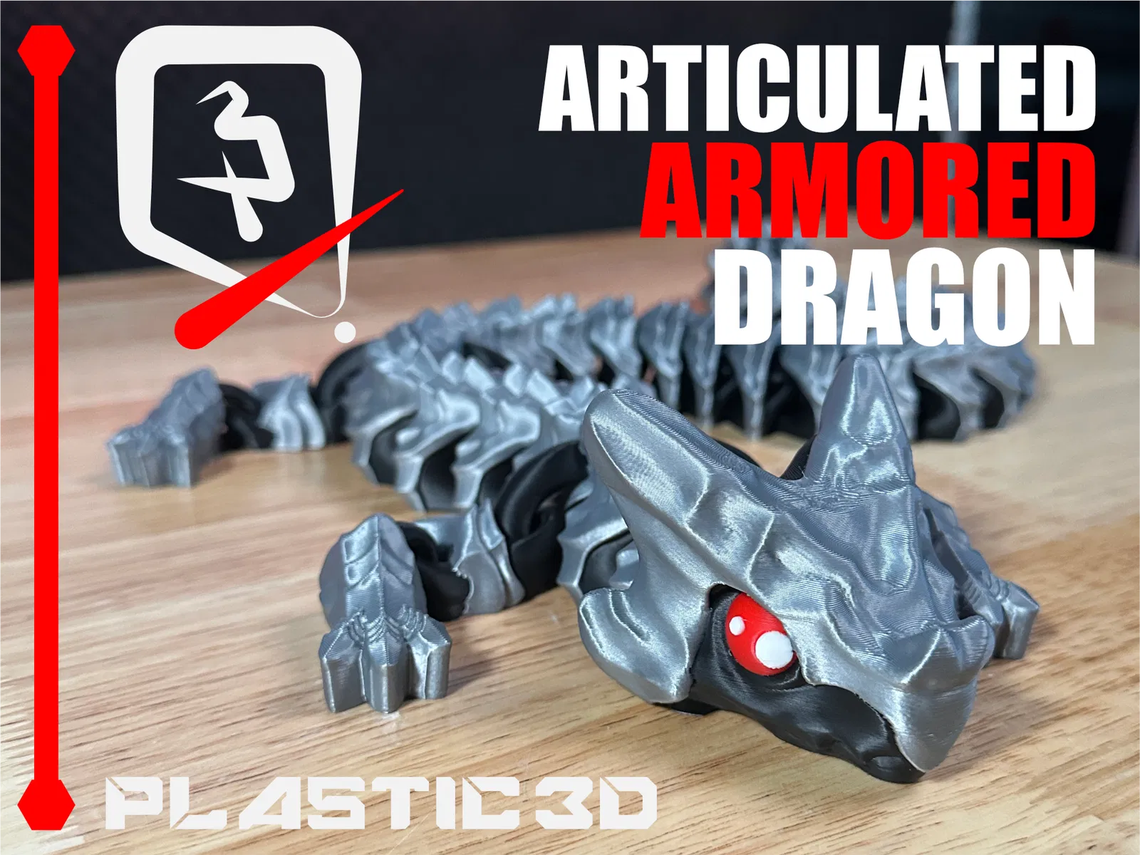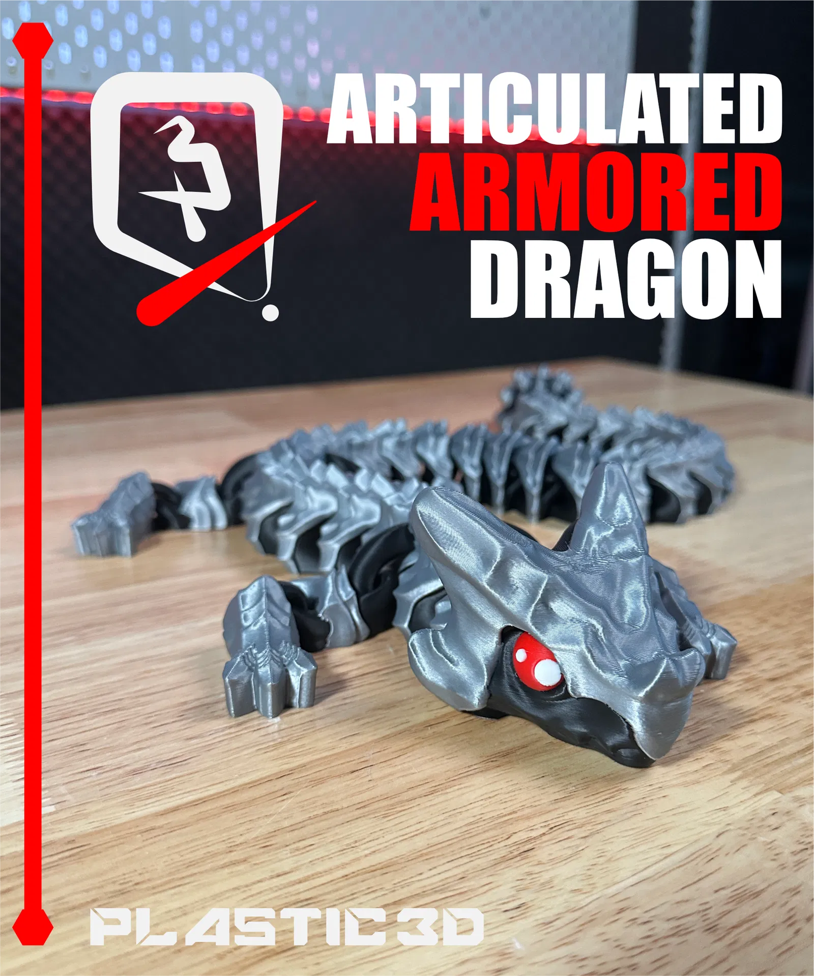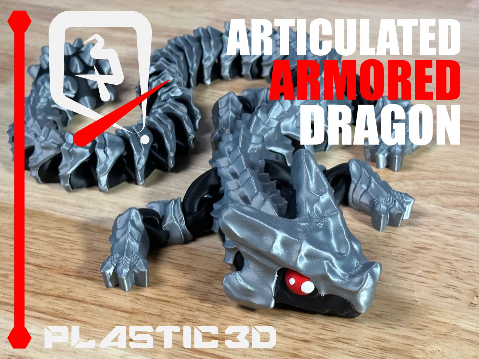 Articulated Armored Dragon -Elder— với vảy giáp dày, khớp nối uốn lượn mượt, print-in-place supportless không cần lắp. File 3MF pre-colored, test kỹ để in ra đẹp ngay trên build plate.