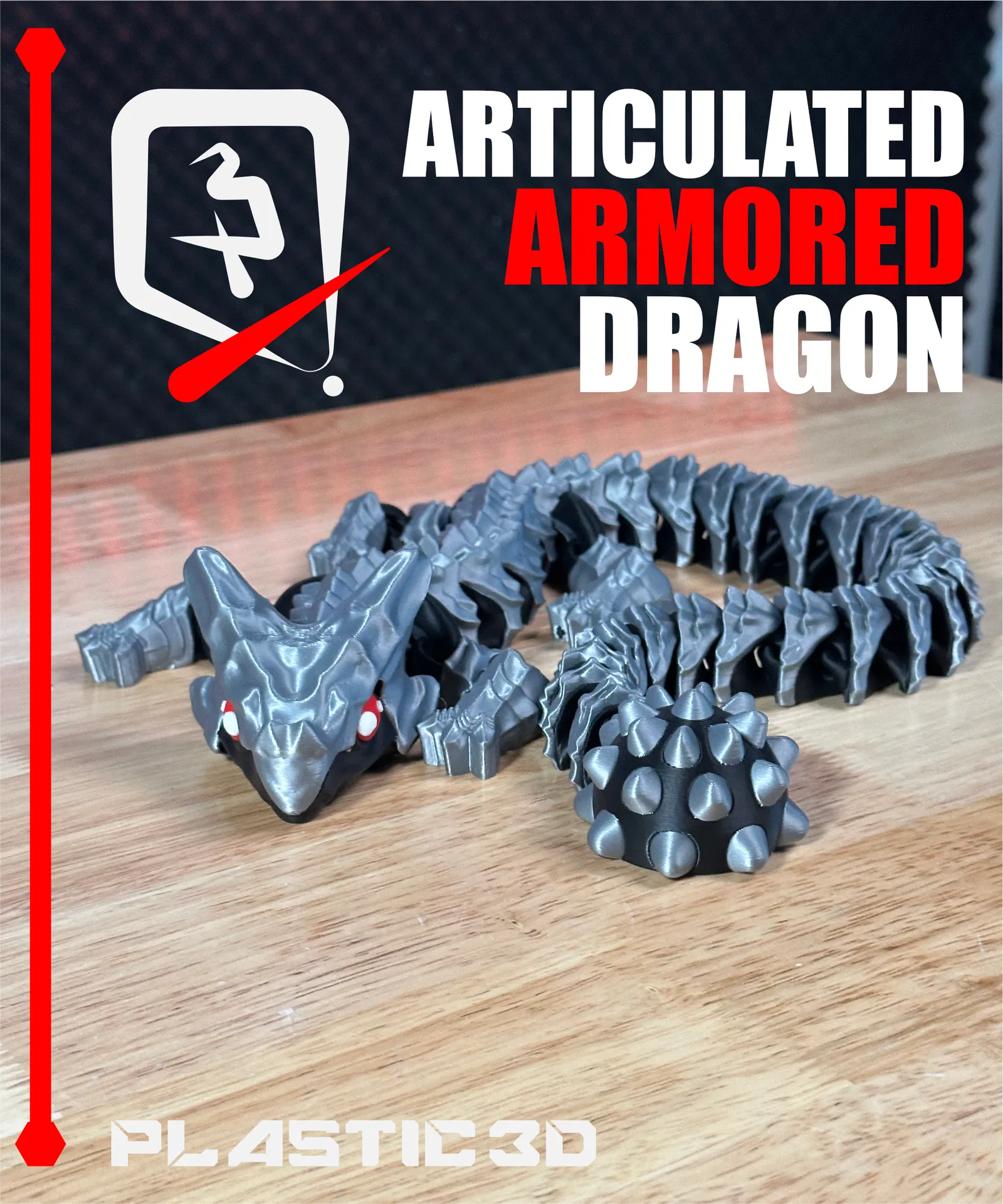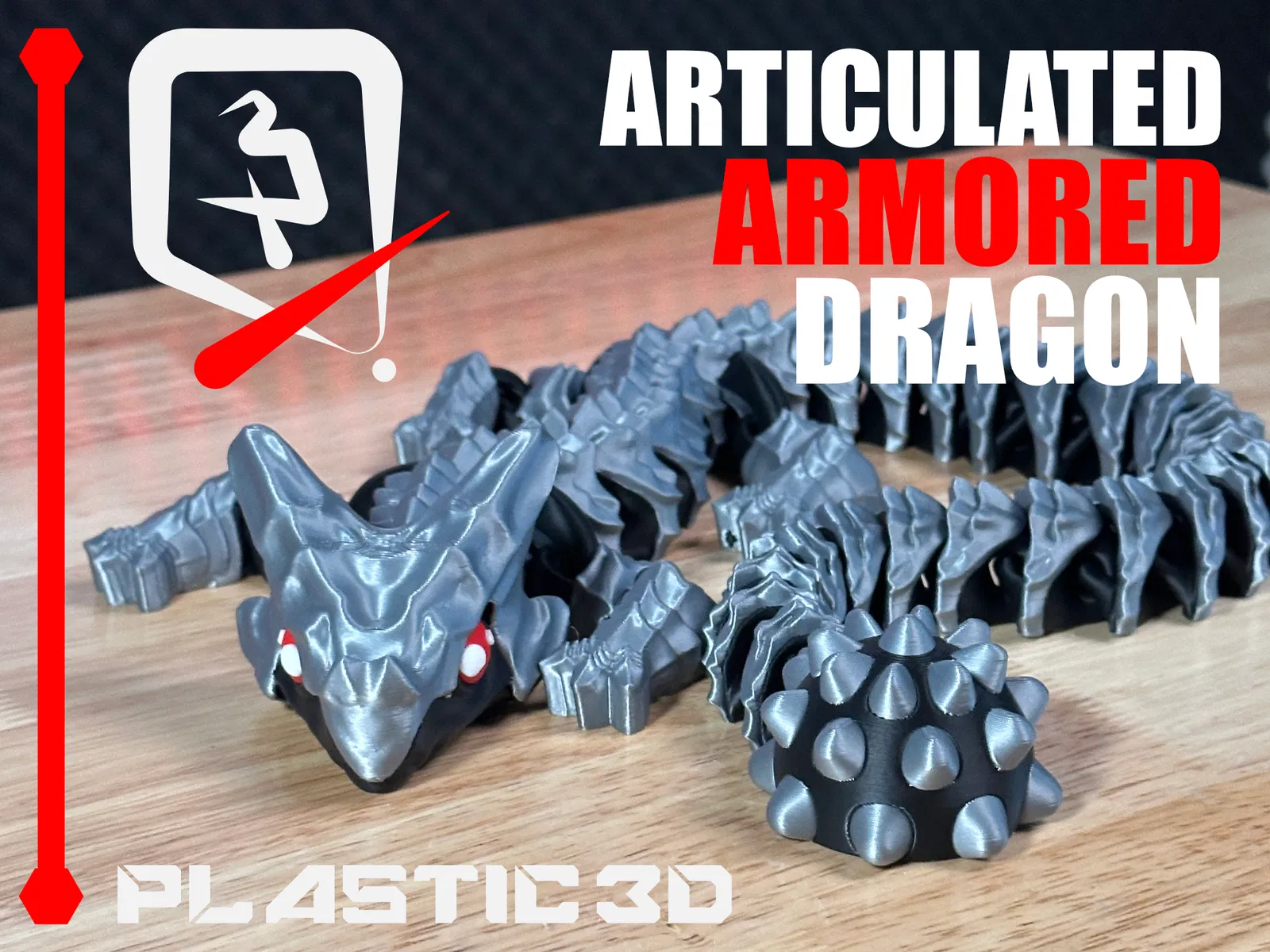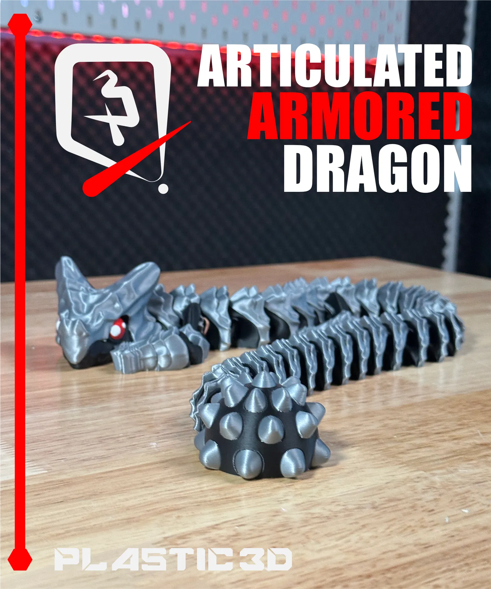 Articulated Armored Dragon -Elder— với vảy giáp dày, khớp nối uốn lượn mượt, print-in-place supportless không cần lắp. File 3MF pre-colored, test kỹ để in ra đẹp ngay trên build plate.