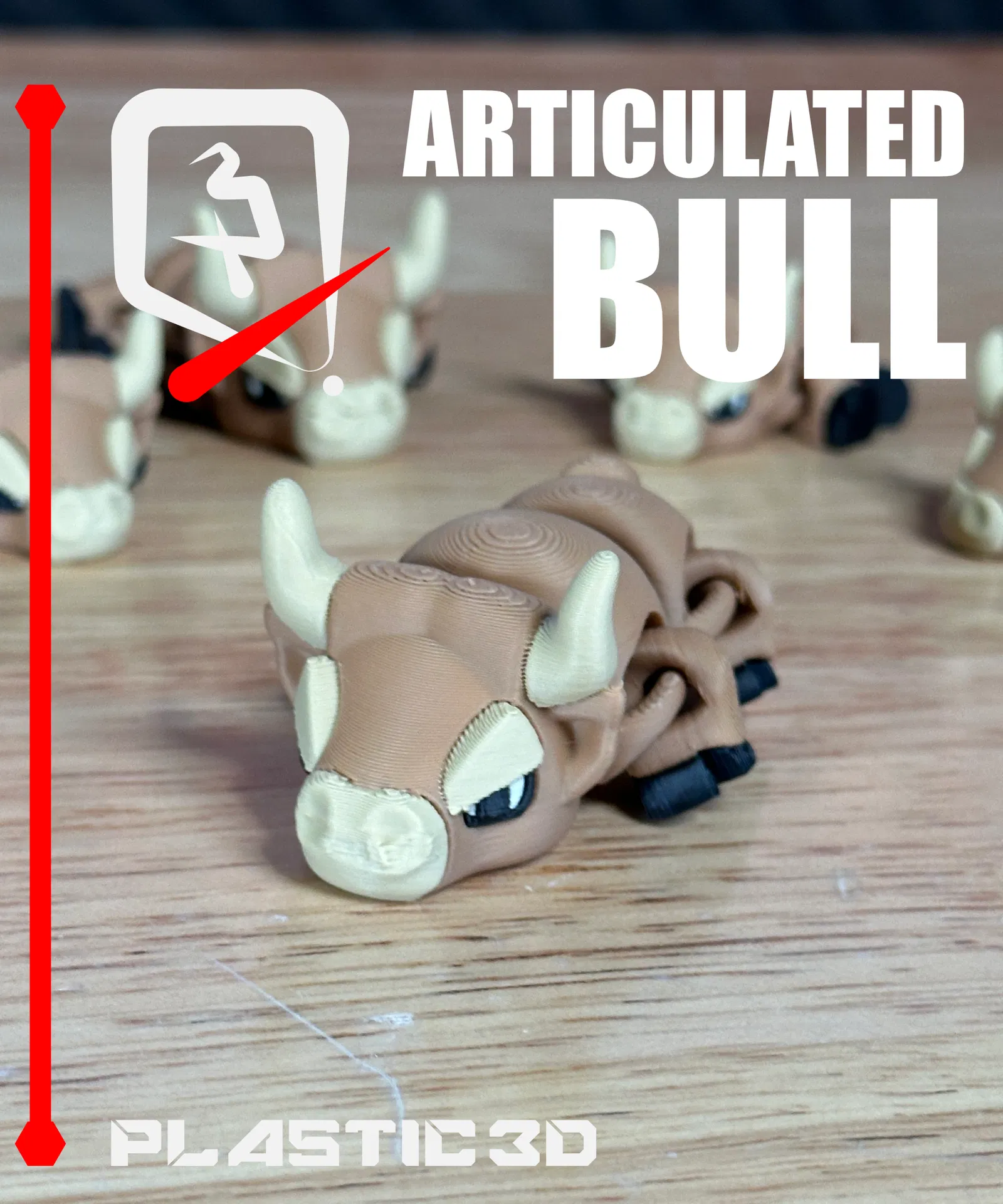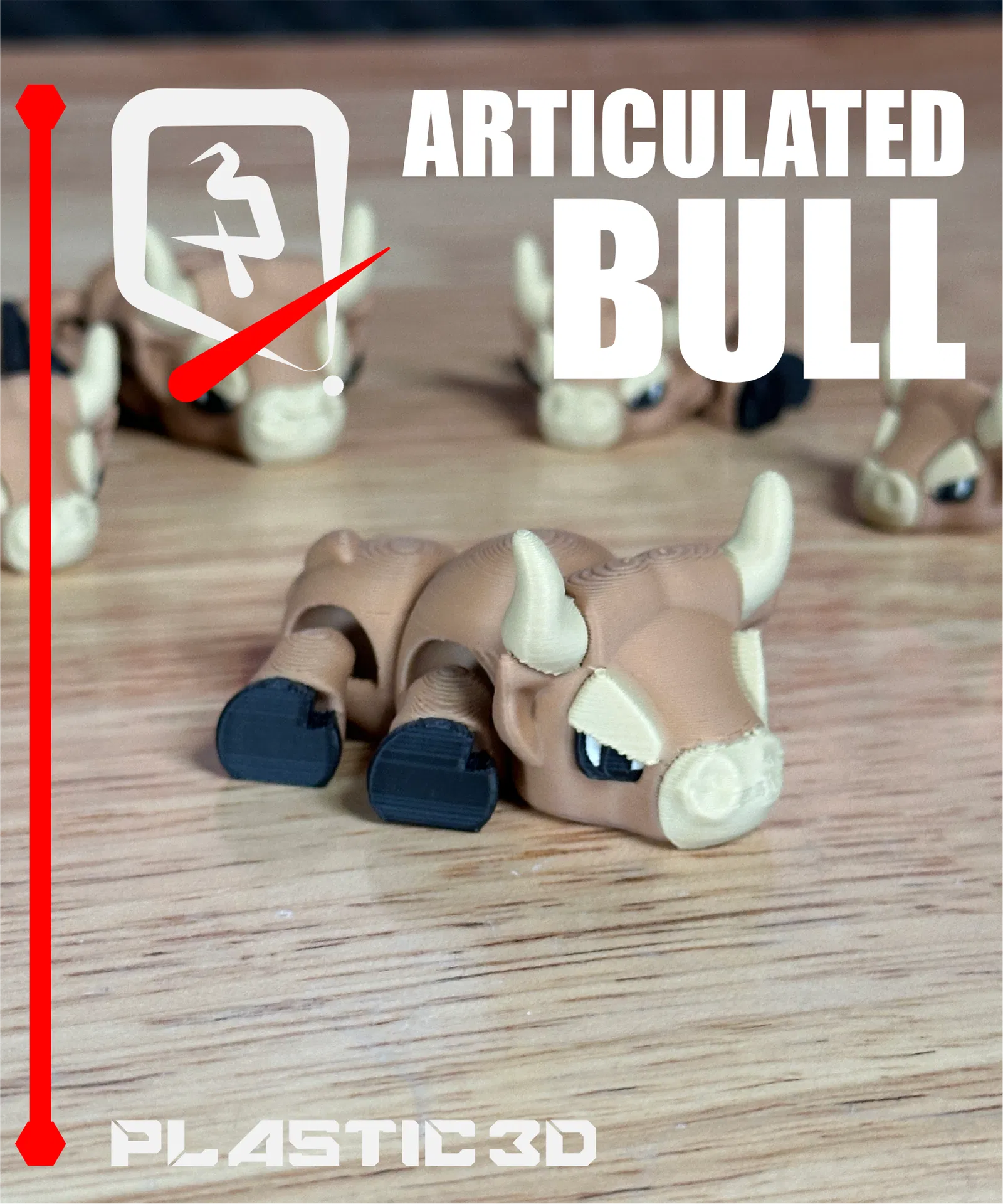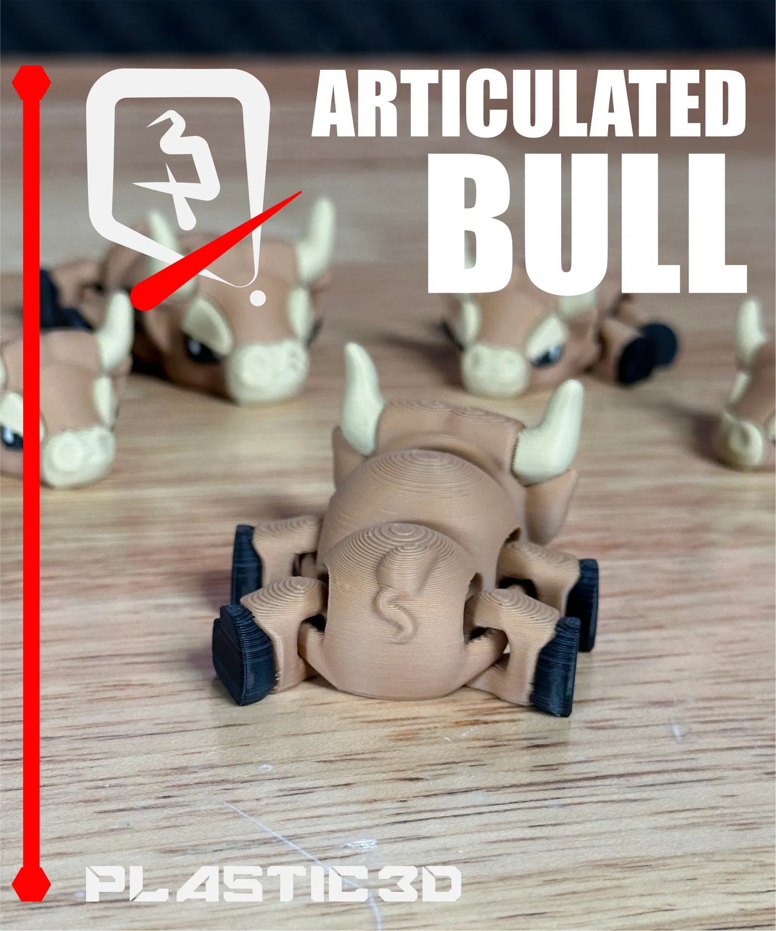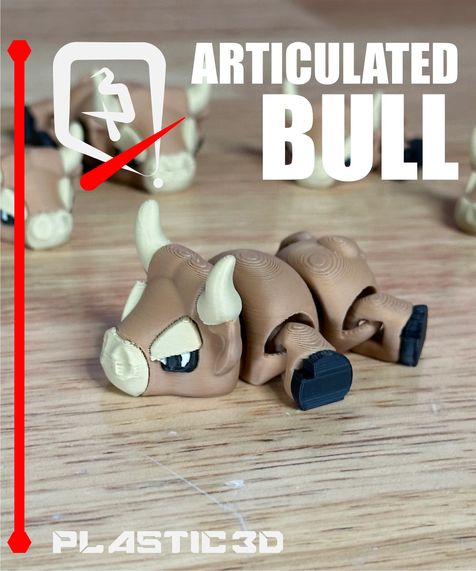 Articulated Bull – Iron Sovereign với dáng đứng oai vệ, phong cách cơ khí hạng nặng. Mẫu fully articulated, thiết kế supportless print-in-place, không cần lắp ráp; kèm 3MF pre-colored cho màu sắc nổi bật.