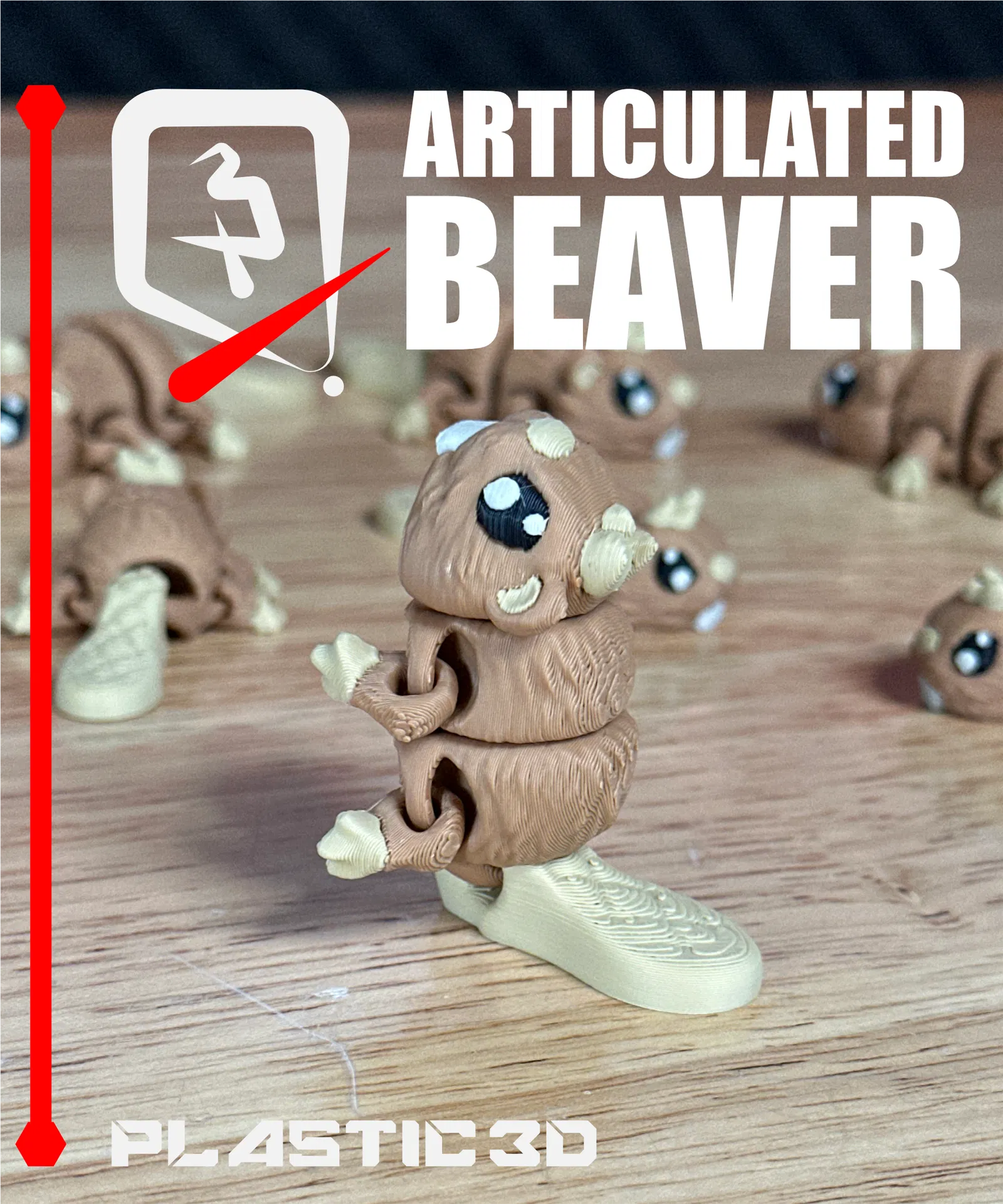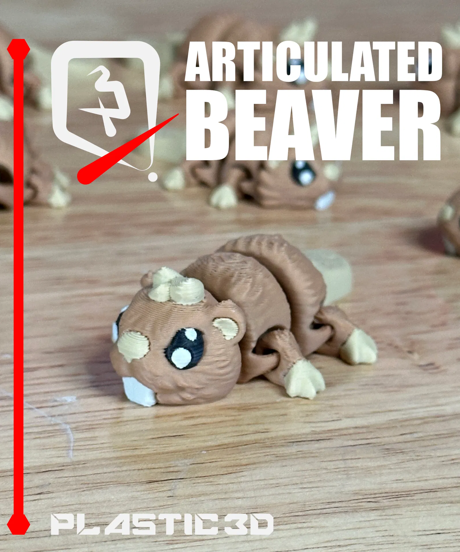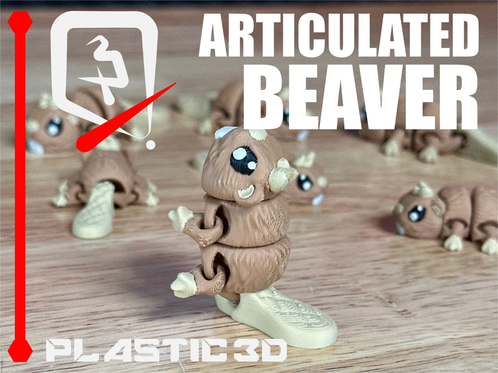 Articulated Beaver – “River Architect” với đuôi dẹt đặc trưng, thân chắc và khớp dày bền bỉ. Thiết kế supportless, print-in-place, hợp in PLA/wood-filled; kèm 3MF pre-colored và tối ưu để cầm nghịch, trưng bày.