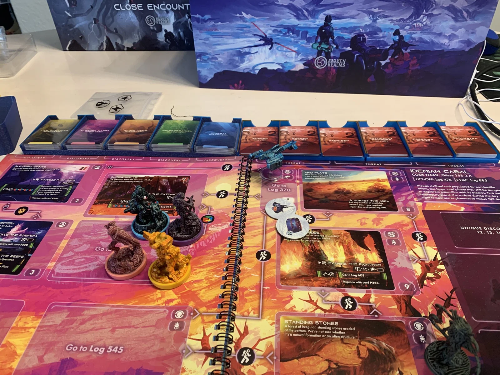 Khay cho thẻ khám phá (được bọc) và thẻ chấn thương (được bọc và không được bọc) cho trò chơi boardgame ISS Vanguard của Awaken Realm.