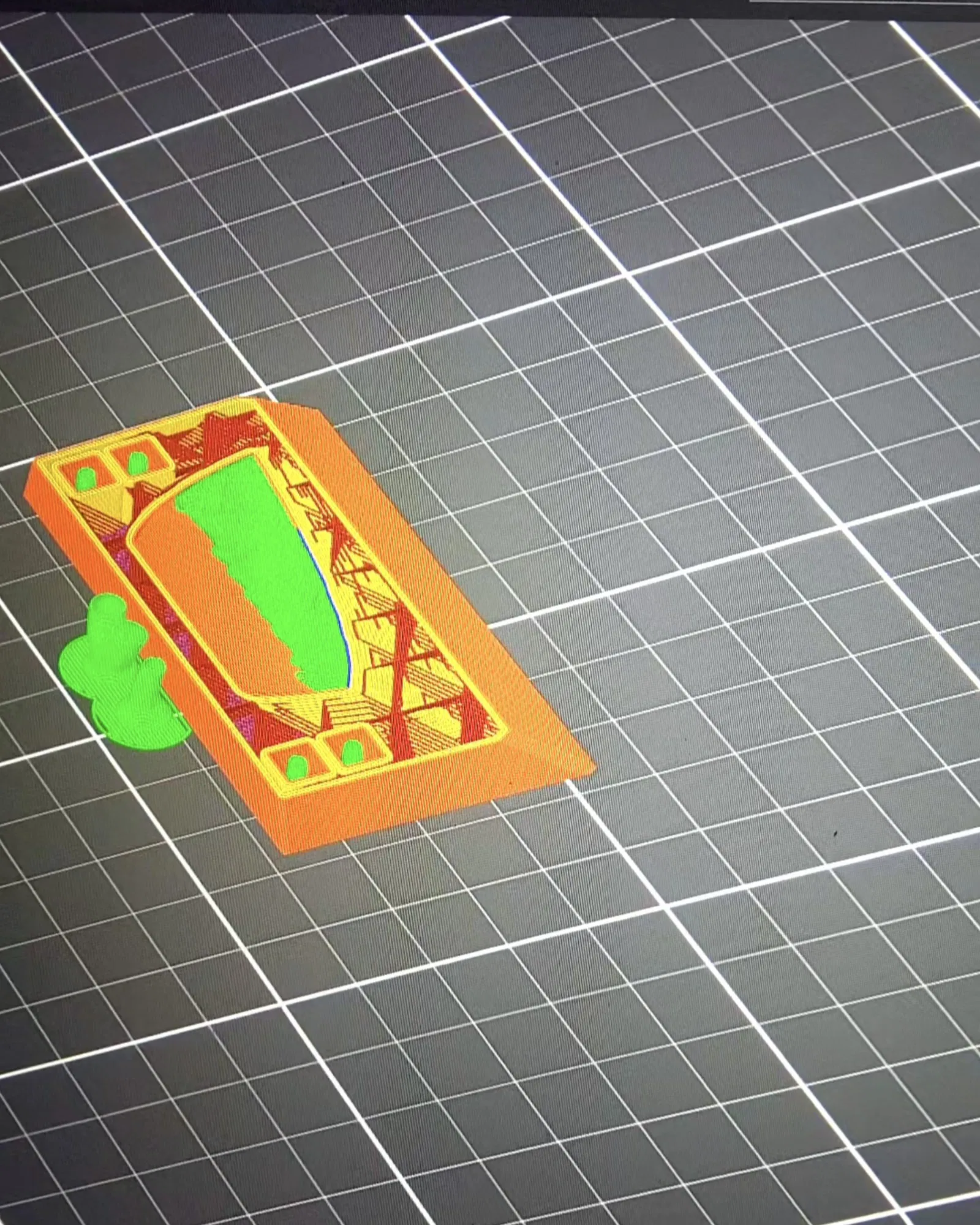 Bồn hứng giúp dẫn nước nhỏ giọt ra ngoài lồng, giữ khu vực nuôi khô ráo. Khoảng cách giữa các song: 22 mm. In bằng PLA, N=0,2 mm, L=0,2 mm, F=20%. Lắp ráp kiểu push-fit (ấn khớp).