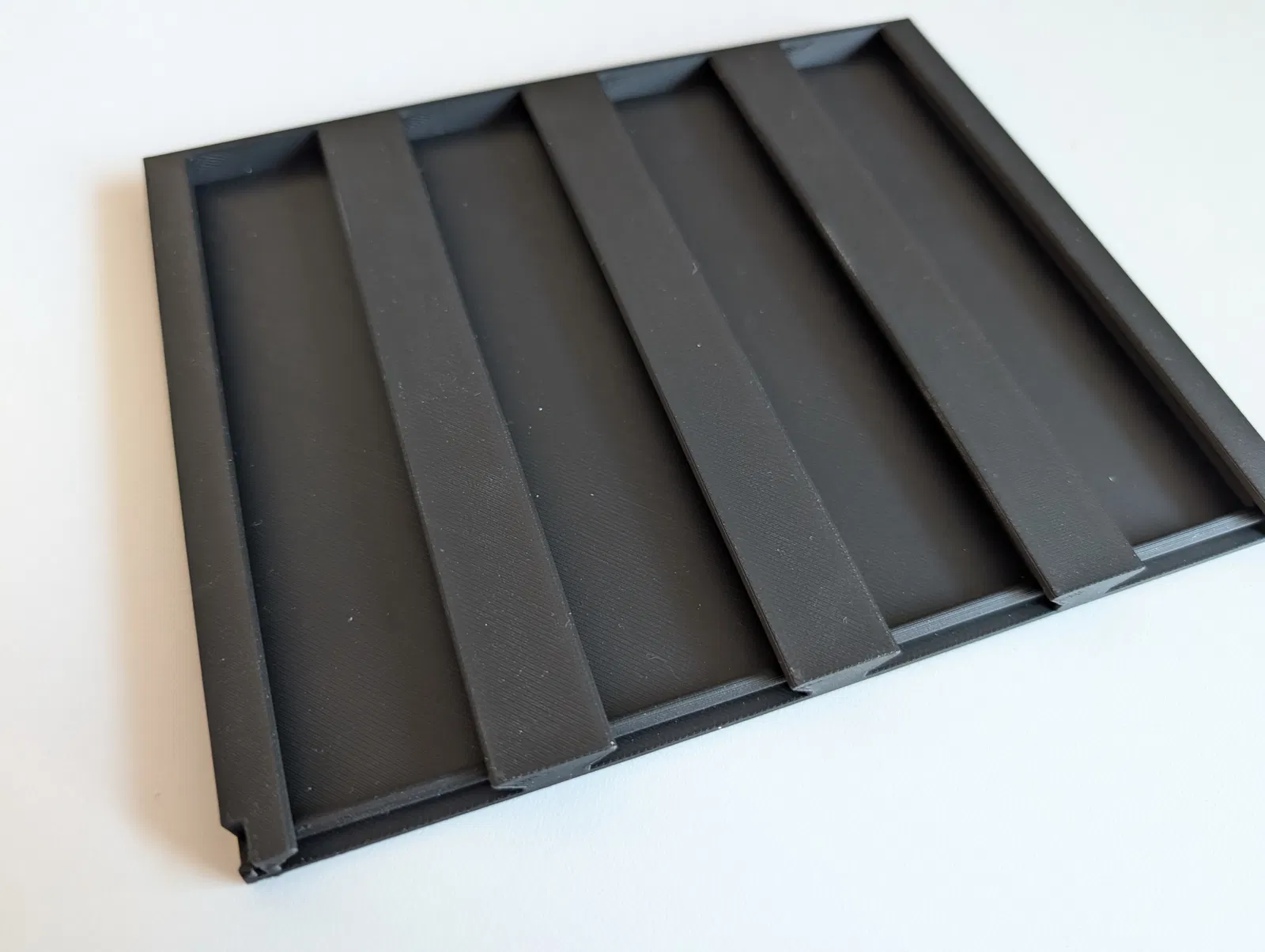 In phiên bản bạn thích. Hình phía trên minh họa bản 4x4 (4 hàng, mỗi hàng 4 model), dùng pin cho 4 hàng. Divider trong hình là bản 65cm. In đúng theo orientation đã cung cấp. Thường sẽ không cần supports. Mẫu trong hình được in bằng PLA Matte với layer height 0.16mm preset “optimal” trong Bambu Studio. Tolerances được thiết kế để vẫn ổn khi máy in kém chính xác hơn, nhưng độ mượt khi trượt model có thể bị ảnh hưởng.
