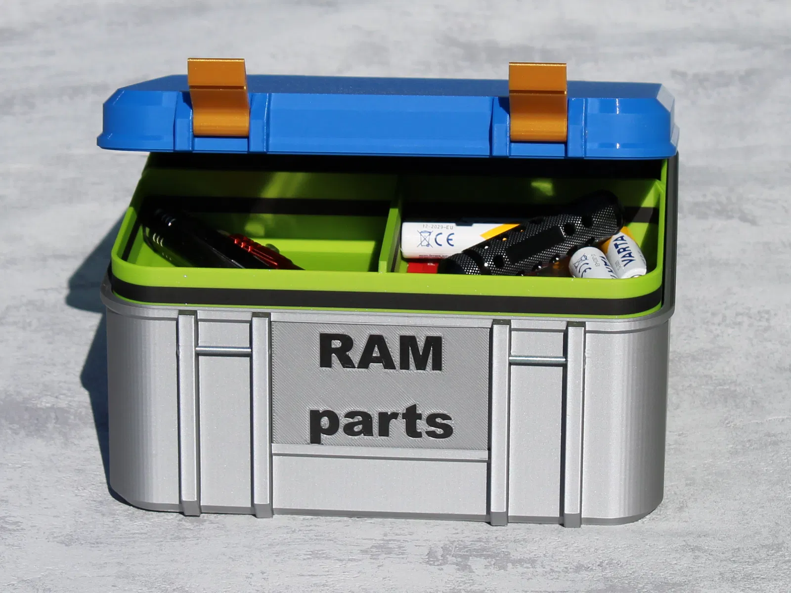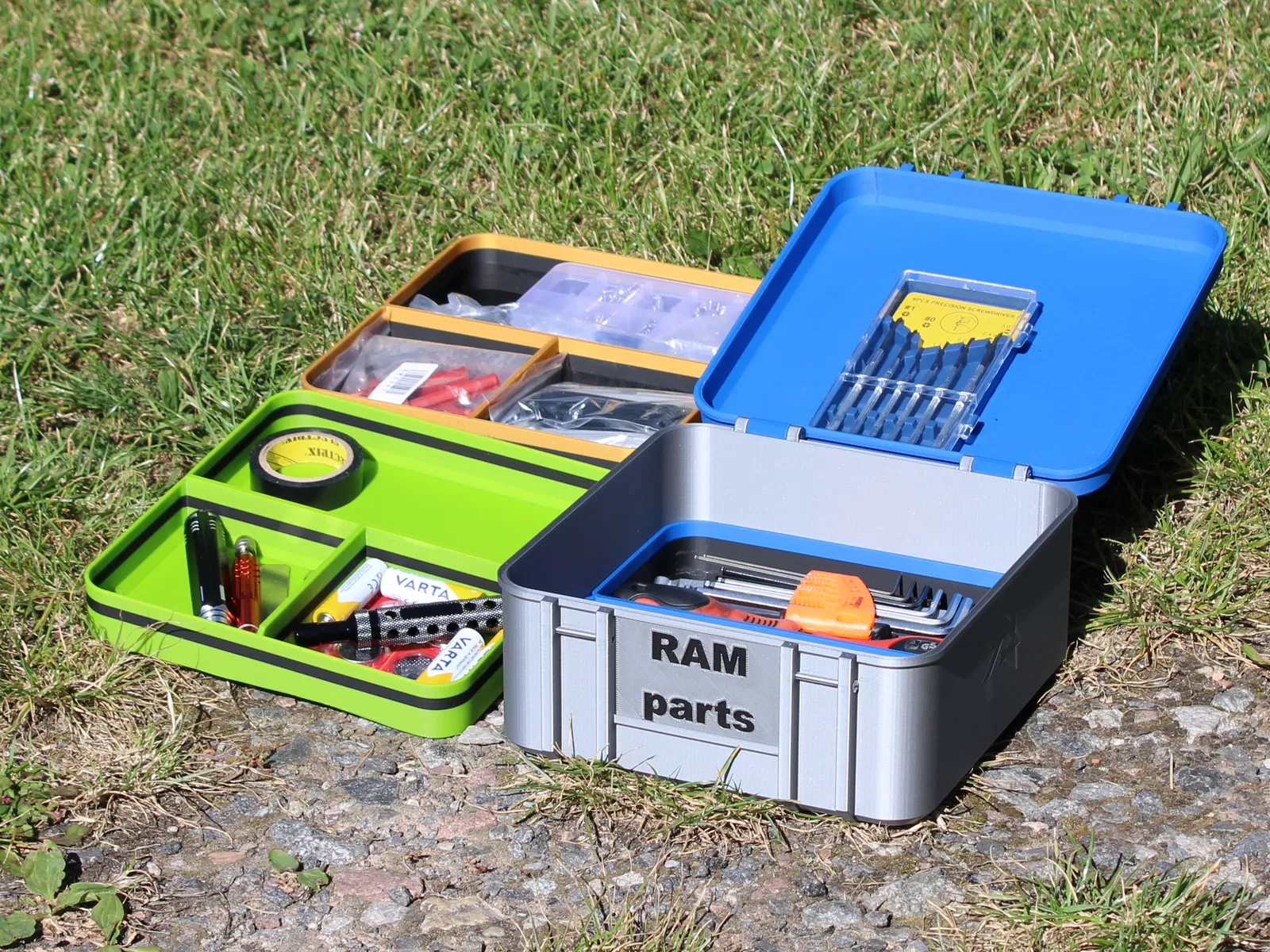 Hộp đựng dụng cụ in 3D này có thiết kế modular với 3 khay xếp chồng, rất hợp để sắp xếp dụng cụ, ốc vít/phụ kiện, hoặc linh kiện nhỏ, dùng 6x ốc M3x30. Mỗi khay được thiết kế để trượt vào và xếp lên mượt mà, đồng thời có số lượng ngăn thay đổi tuỳ nhu cầu. Tối ưu cho in dễ và không cần support với PLA.