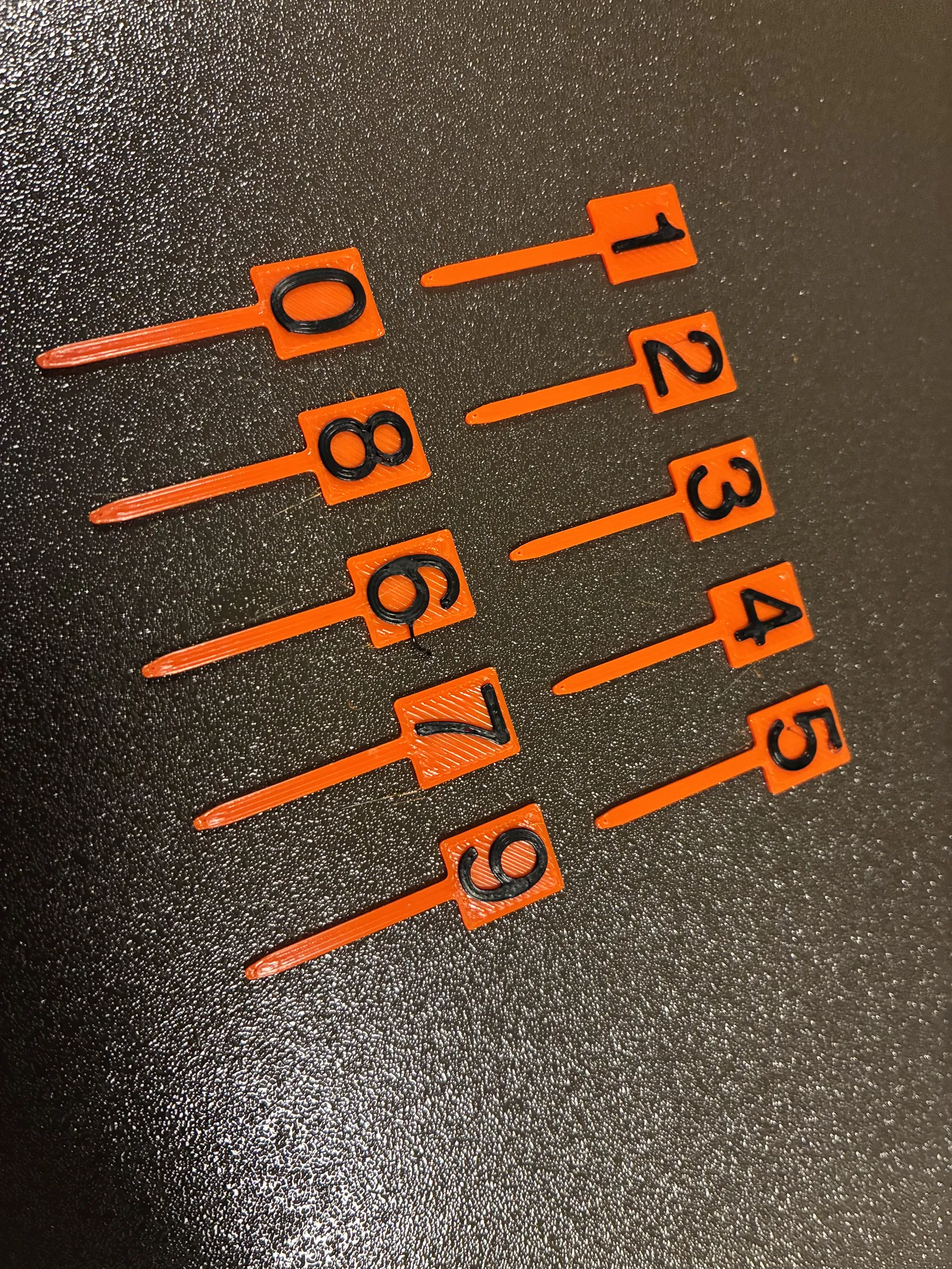Bộ nhãn/bảng số nhỏ gọn cho ươm hạt và tiền nảy mầm. Cao 12 mm, có cọc cắm xuống đất, gồm số 0–9 để đánh dấu cây con. Hỗ trợ in hai màu cho chữ rõ, cũng in một màu vẫn dễ đọc.