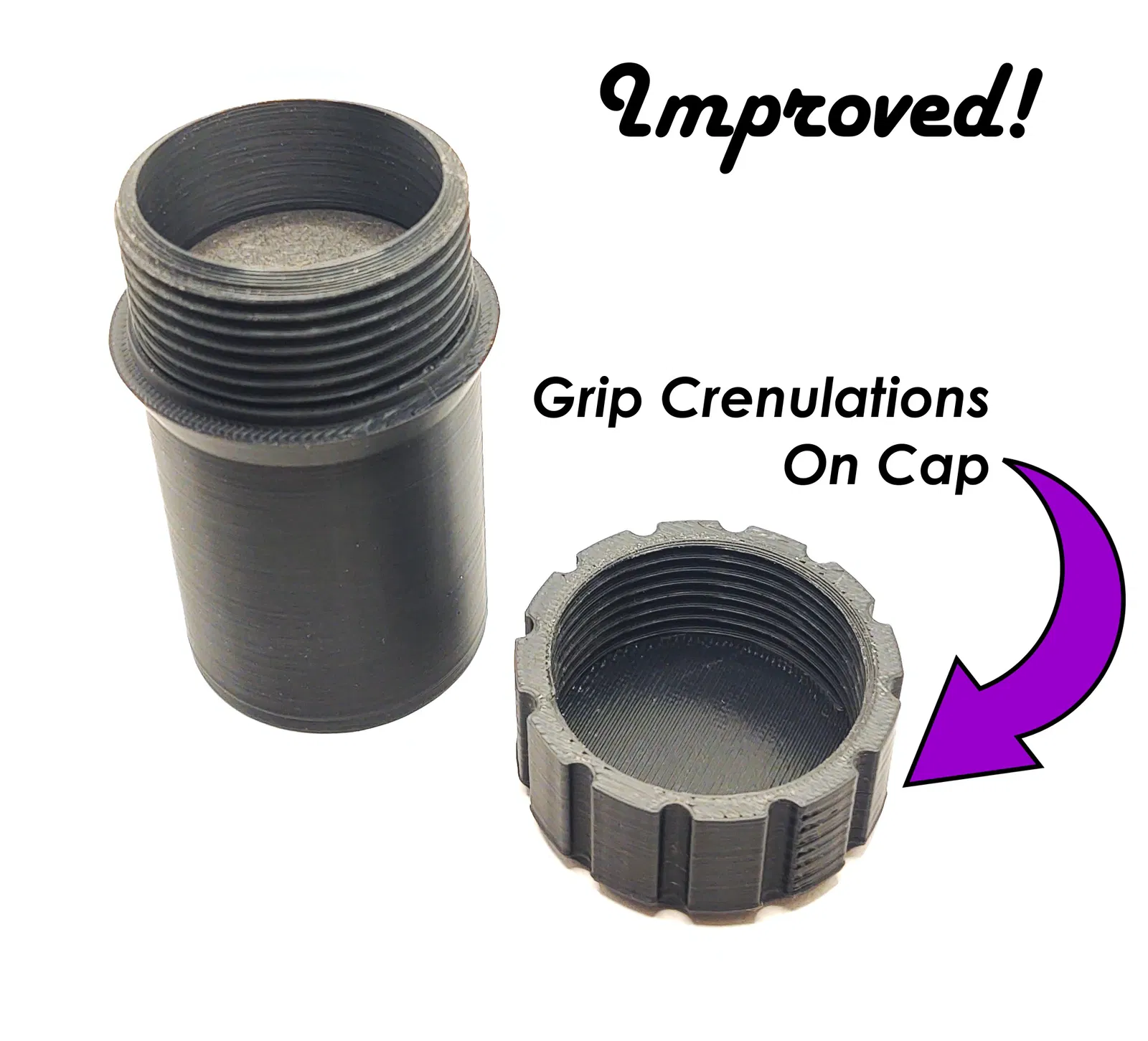- Thêm vân nhám (knurling) để cầm nắm tốt hơn trên nắp.