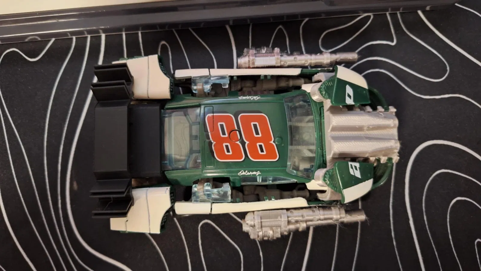 Phần đèn pha trước của xe không nhất thiết phải tháo ra để đặt bản in 3D lên phía trên.