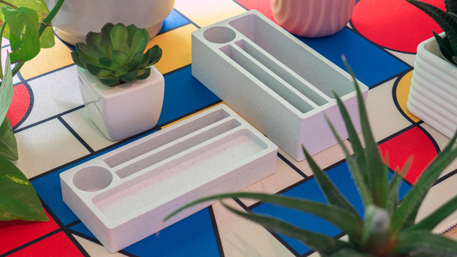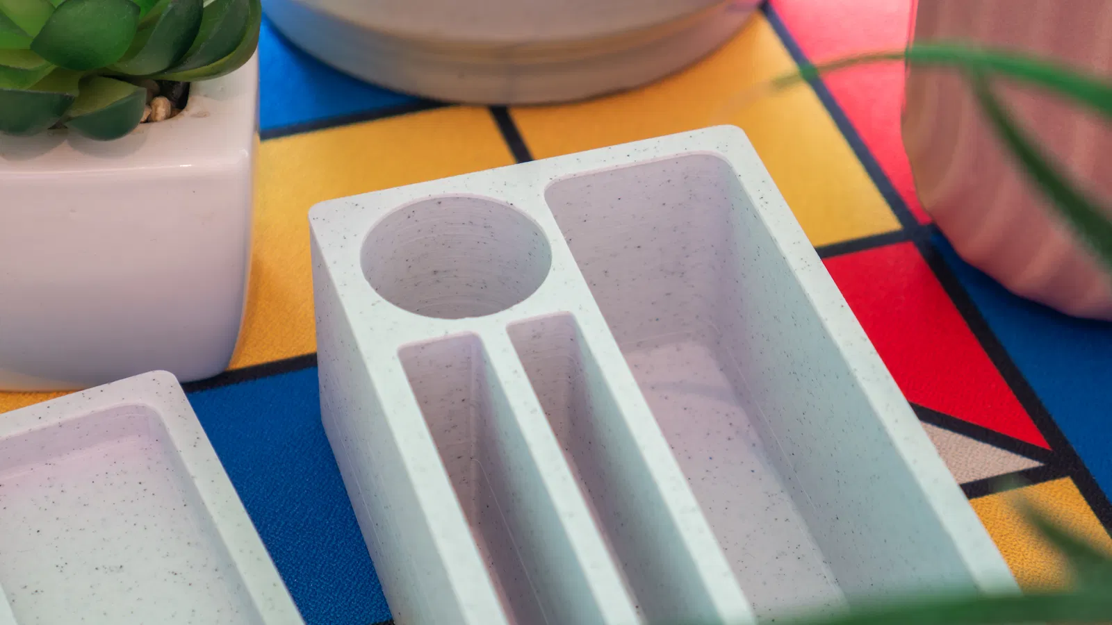 Mình hướng tới thiết kế tối giản, nhỏ gọn để dễ bỏ vào balo, rất tiện khi đi du lịch/di chuyển. Mình cũng muốn nhìn hiện đại hơn, nên đã in bản của mình bằng filament vân đá (marble), tạo cảm giác kiểu brutalist, gần như một khối bê tông có thể mở ra vậy! Nhưng bạn cứ thoải mái sáng tạo với bản in của riêng mình nha. :)