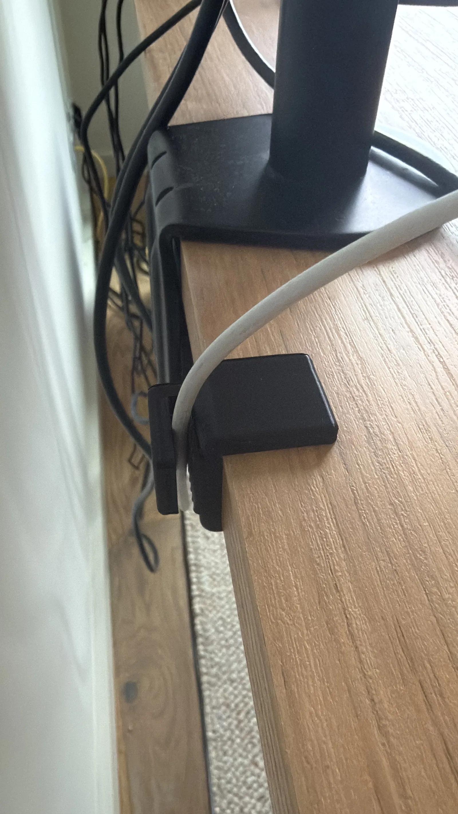 Hiện đang vừa với bàn dày 26mm, nhưng bạn có thể re-scale theo nhu cầu. Phần kẹp/dẫn cáp có thể giữ tốt nhiều đường kính dây khác nhau.