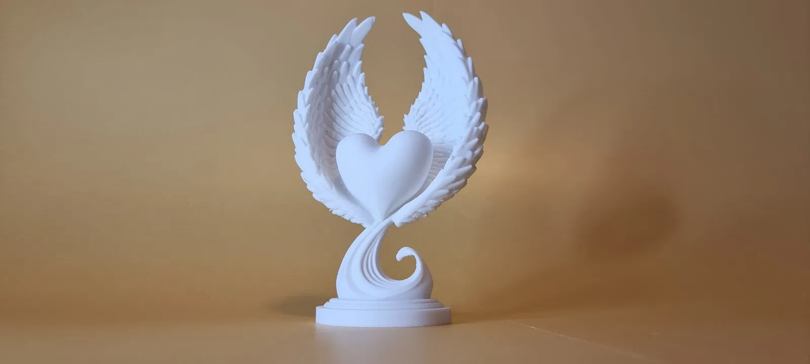 Mẫu tượng trang trí thanh lịch này là một biến tấu tối giản từ những biểu tượng kinh điển, kết hợp sự mềm mại hữu cơ của hình trái tim với chi tiết tinh xảo của đôi cánh thiên thần. Đây là một món decor nổi bật, cân bằng giữa thẩm mỹ 3D printing hiện đại và cảm xúc lãng mạn vượt thời gian.