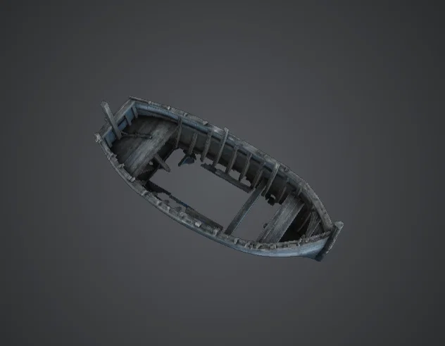 Thân Thuyền Chèo Gỗ Bị Bỏ Hoang – Mảnh Terrain Xác Tàu Ven Biển