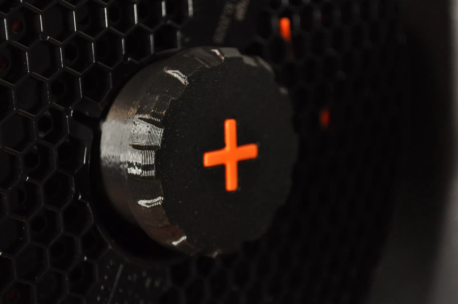Vì cái dấu cộng nhỏ trên spool holder thực ra không có tác dụng gì (ít nhất là theo như mình biết), nên mình nghĩ thiết kế thêm một miếng insert nhỏ sẽ giúp máy nhìn nổi bật hơn nhờ có thêm chút màu sắc.
